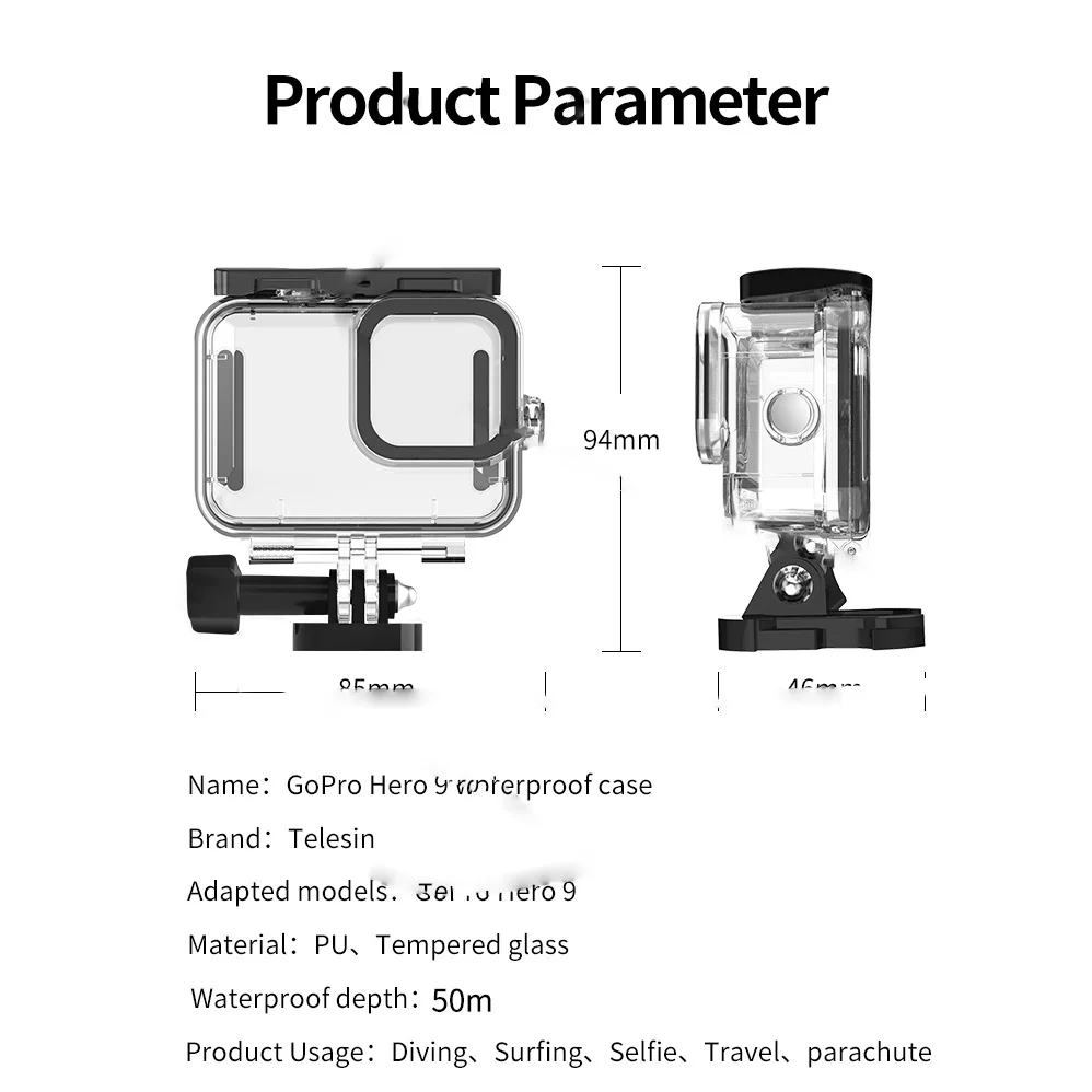 TELESIN 50 м водонепроницаемый чехол для дайвинга, чехол для GoPro Hero 9, Черные Аксессуары для подводной экшн-камеры