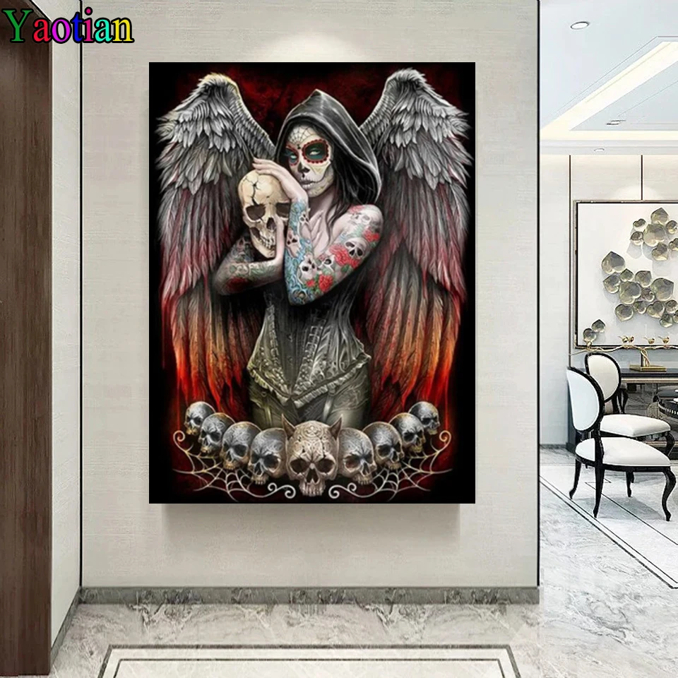 Алмазная вышивка с крылатым черепом, алмазная 5D картина сделай сам, алмазная вышивка крестиком, мозаика, алмазная полная выкладка, квадратная картина на Хэллоуин