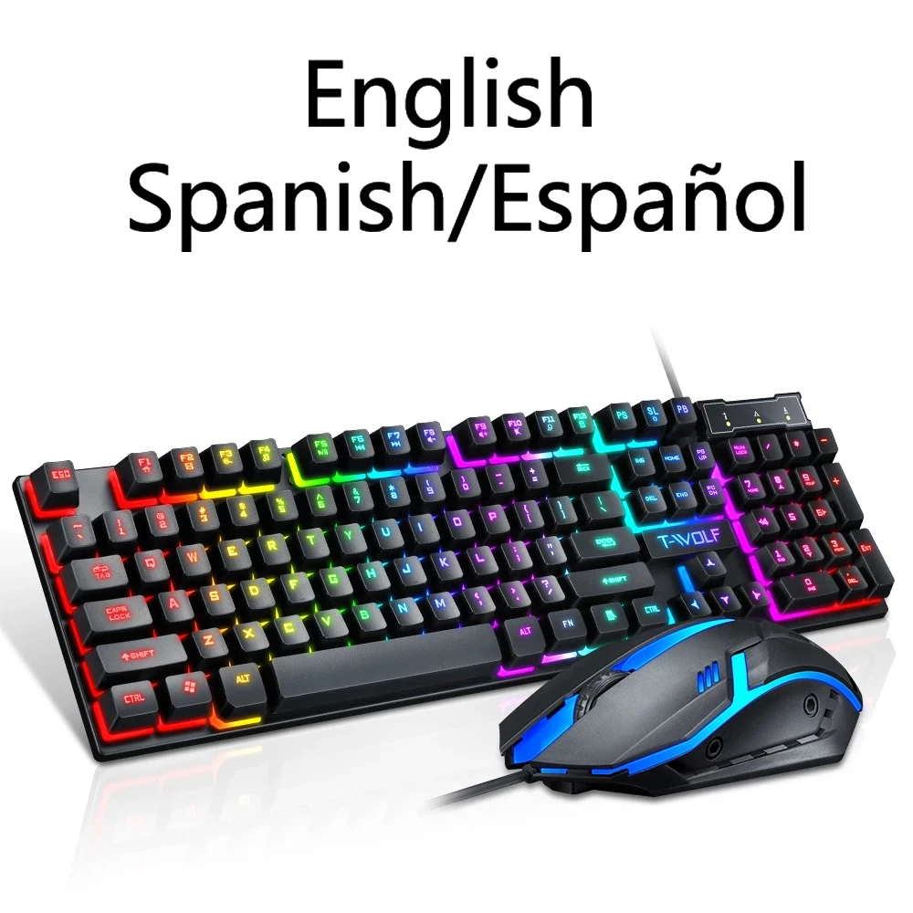 Проводная игровая клавиатура и мышь, USB персонажи, светящаяся Механическая игровая клавиатура, мышь, 1600DPI для ПК, ноутбука, испанскийанглийский
