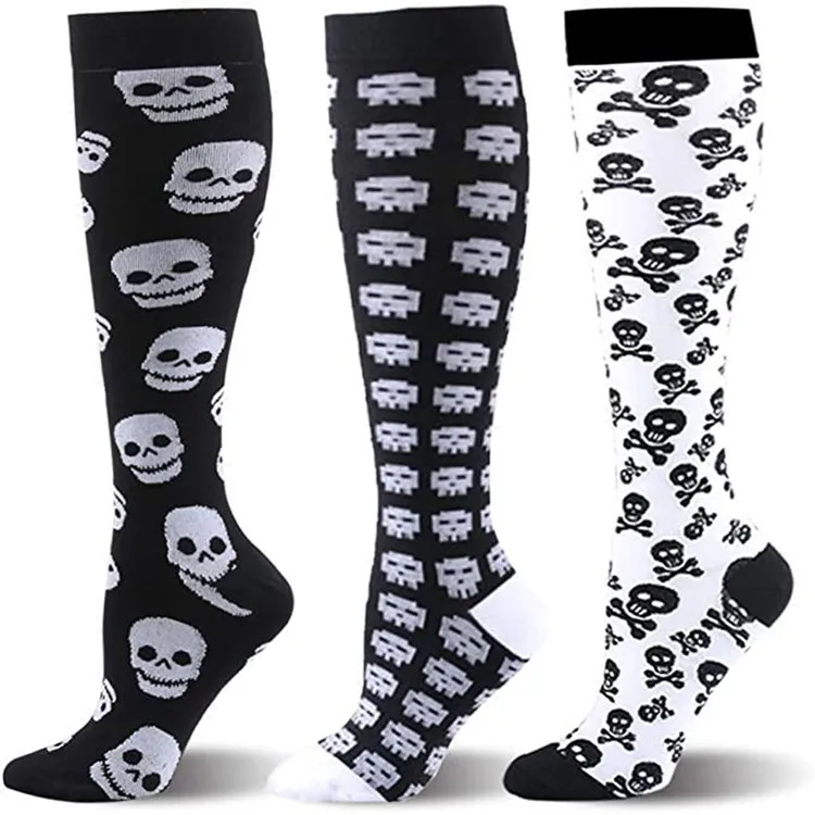 Спортивные носки Хэллоуин, Череп, ужас, Компрессионные носки, спортивные до колена, мужские, женские, мужские носки, компрессионные носки