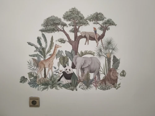 Большие Животные в джунглях для детской комнаты, украшение для спал...