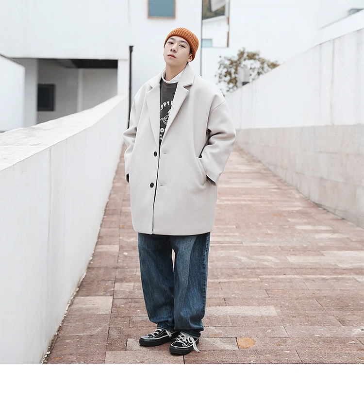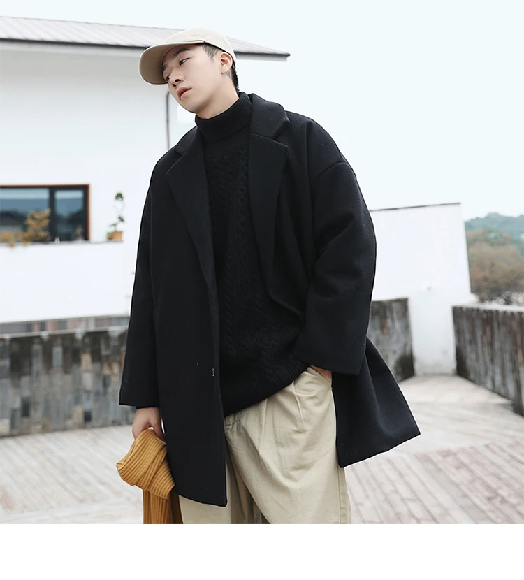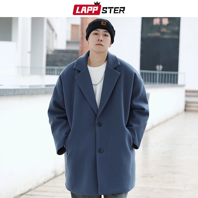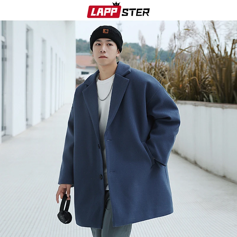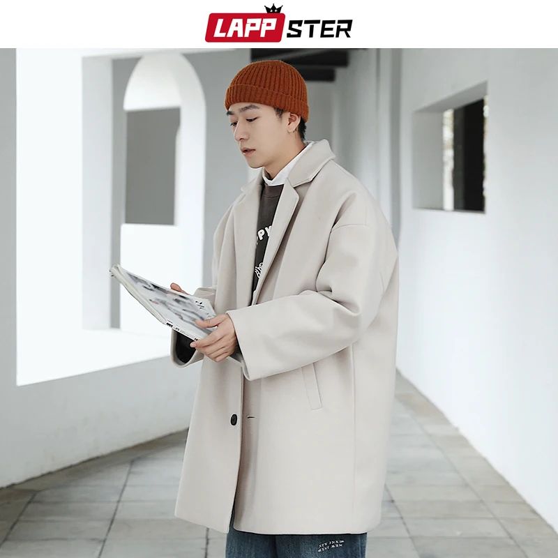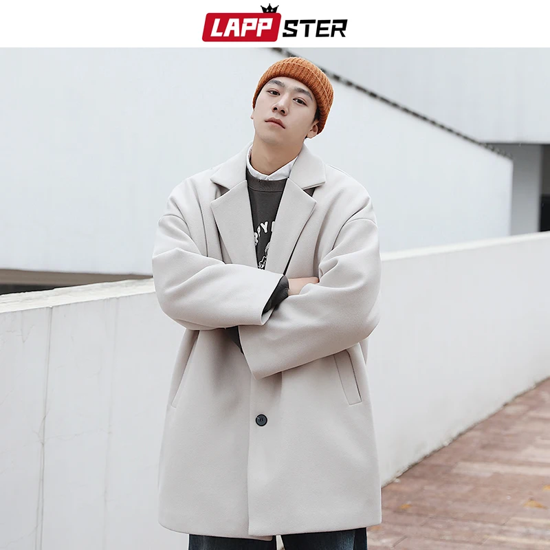 Тренчкот LAPPSTER мужской длинный, модный однотонный тренчкот в Корейском стиле, винтажная модель большого размера, мужское шерстяное пальто, Повседневная ветровка в стиле Харадзюку, зима 2022