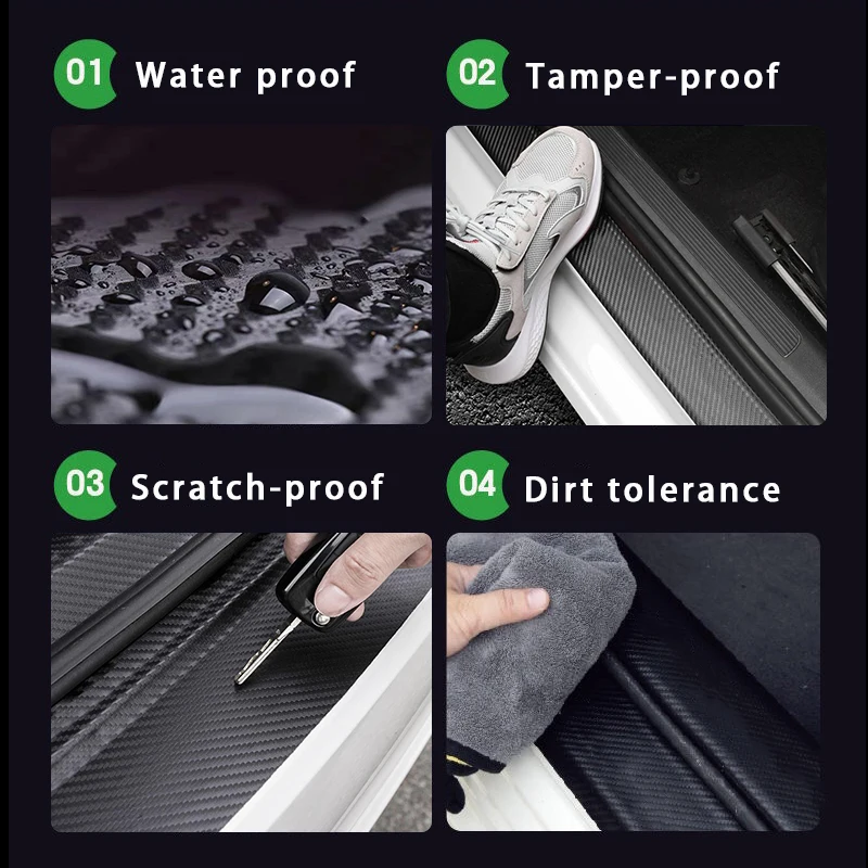 4 шт., защитные наклейки на пороги автомобиля, из углеродного волокна