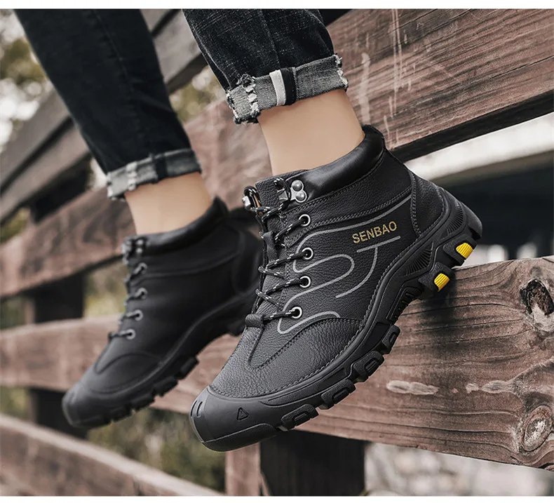 Брендовые зимние мужские ботинки, теплые мужские зимние ботинки, высококачественные кожаные водонепроницаемые мужские кроссовки, уличные мужские походные ботинки, Рабочая обувь