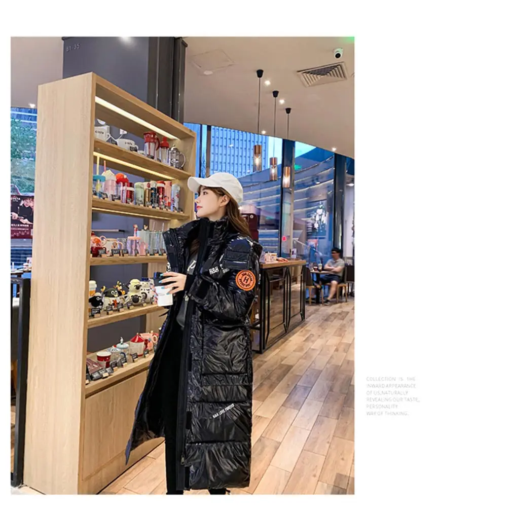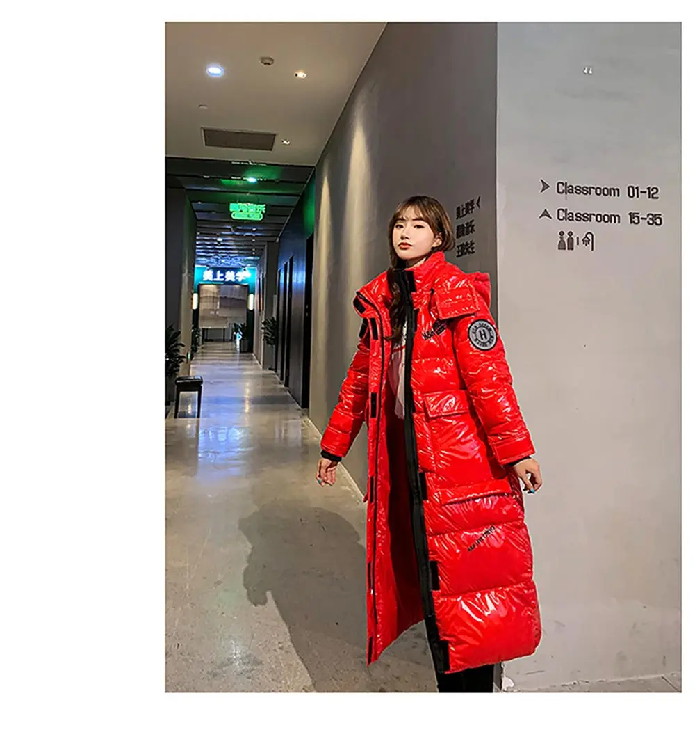 Новинка 2021, зимняя куртка оверсайз, Женская Глянцевая зимняя толстая пуховая куртка из хлопка, Женское пальто, Женское пальто с капюшоном, Длинные парки