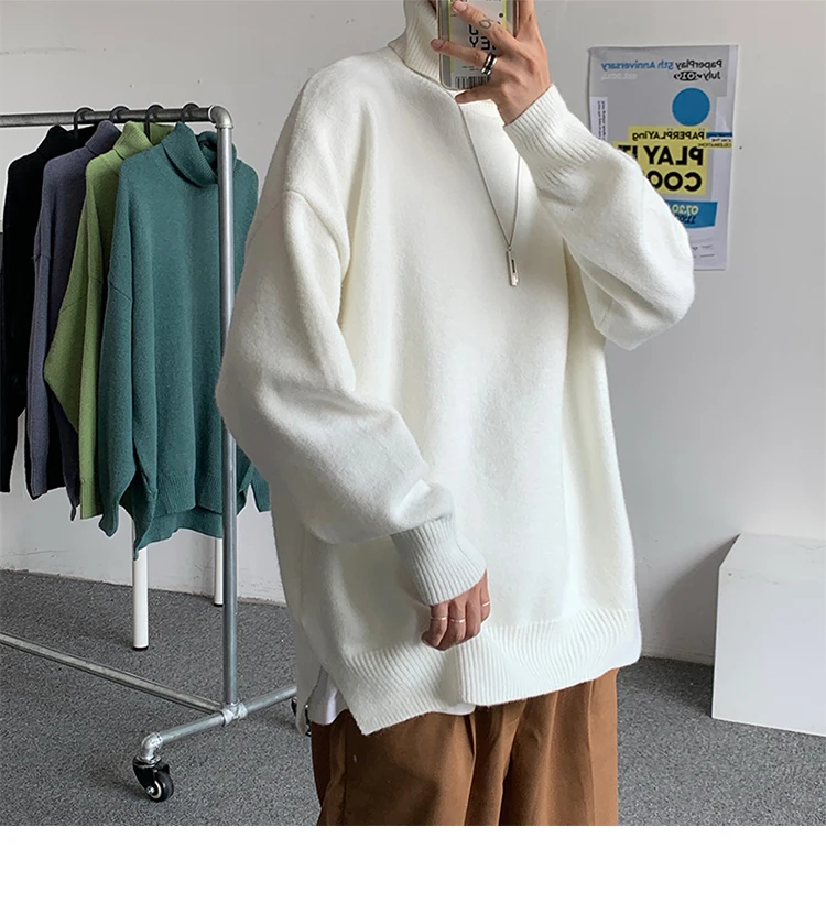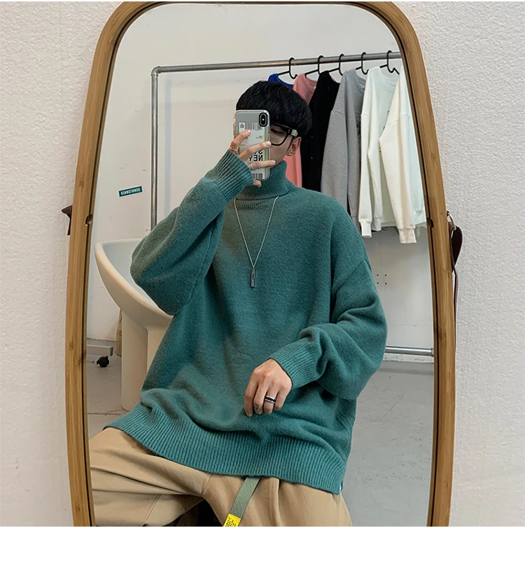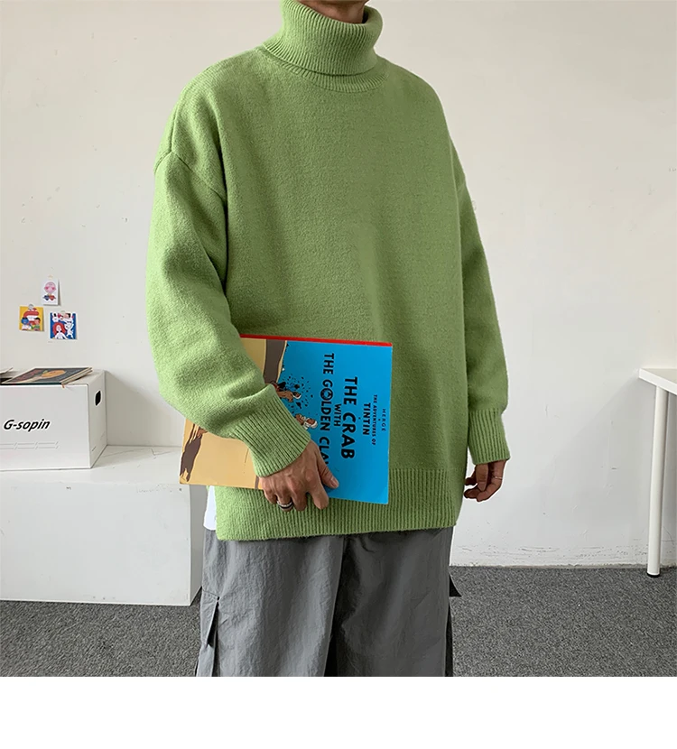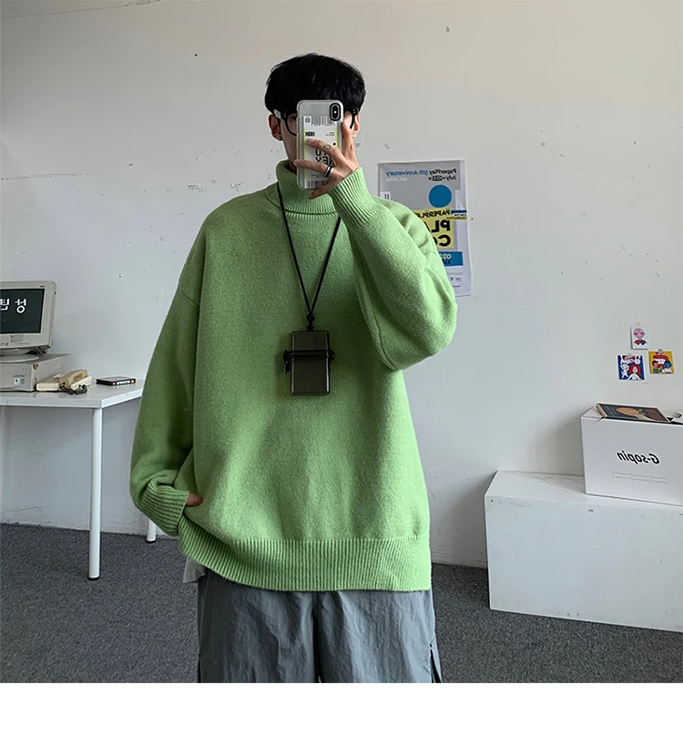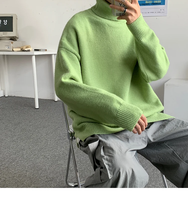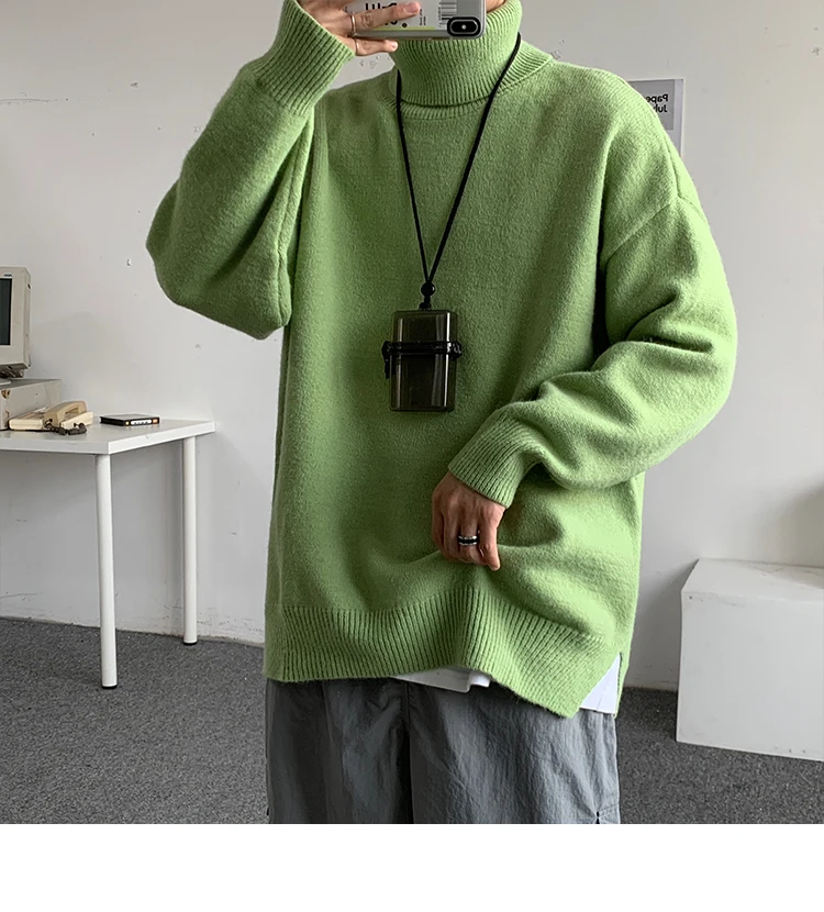 Свитер LAPPSTER мужской с высоким воротником, однотонный яркий вязаный винтажный пуловер в стиле харадзюку, корейский стиль, большие размеры, Y2k, 2022