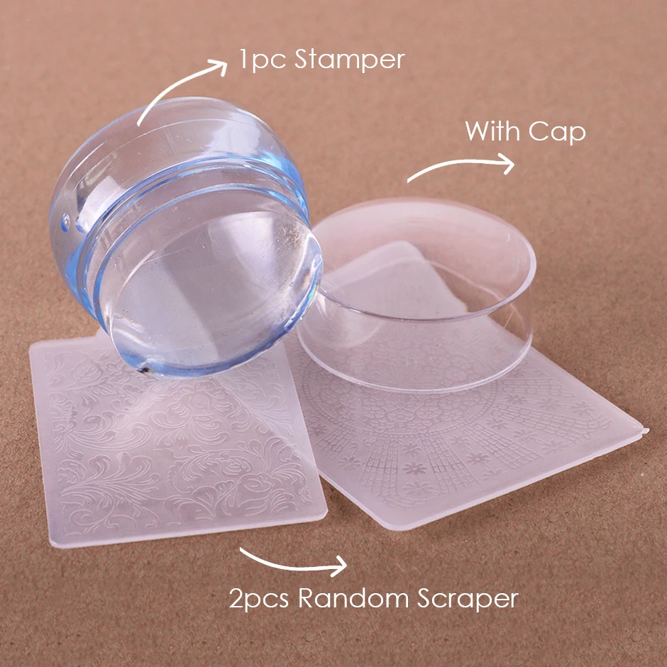 Прозрачный Набор для Штамповки Ногтей Силиконовая Желейная Головка Инструменты Для Штамповки Гель-лак Французский Дизайн Со Скребковой Крышкой Маникюрные Аксессуары CH621-1
