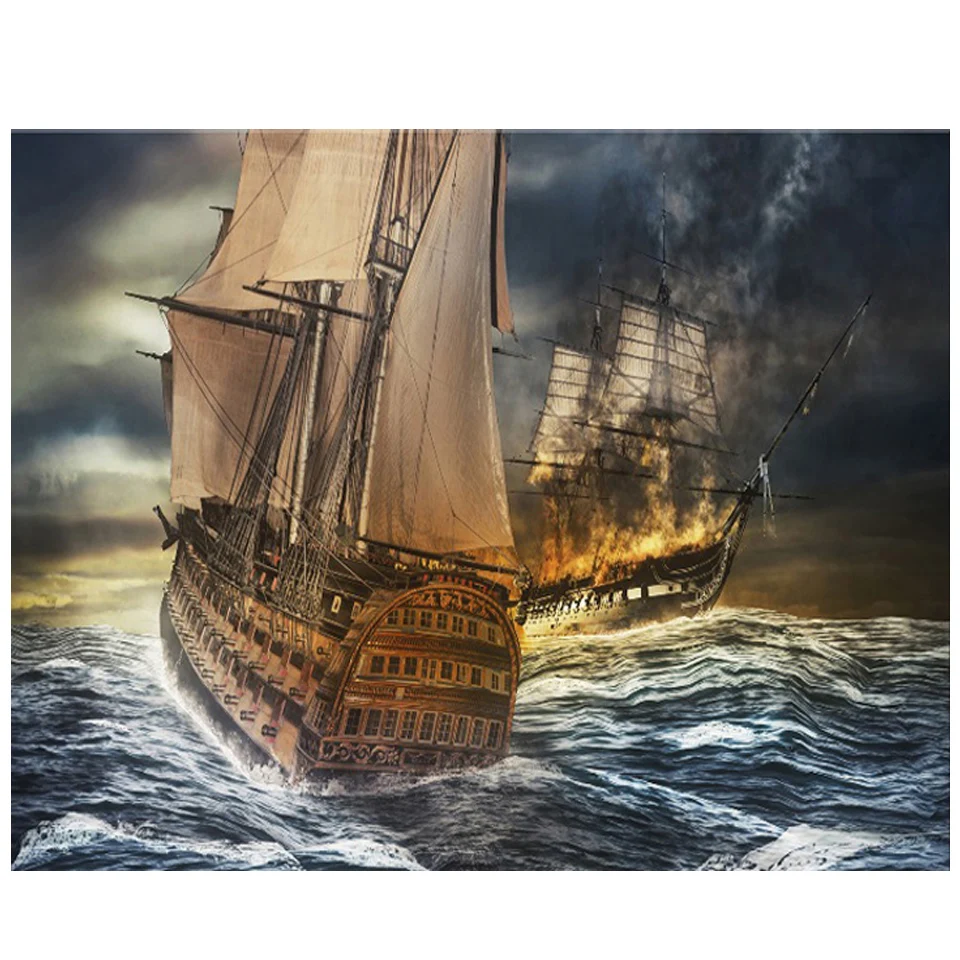 5D алмазная живопись сделай сам, корабли, морской шторм, сцена битвы, мозаика, картина стразы, вышивка бисером, искусственная вышивка