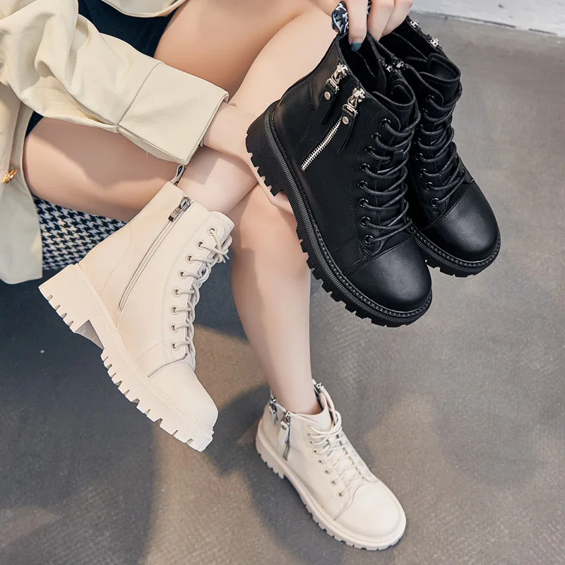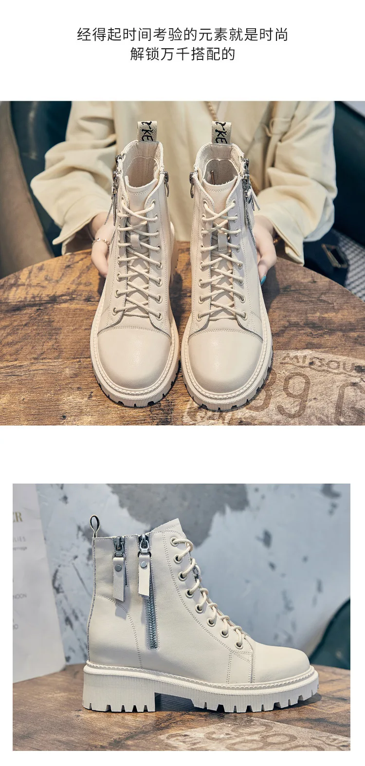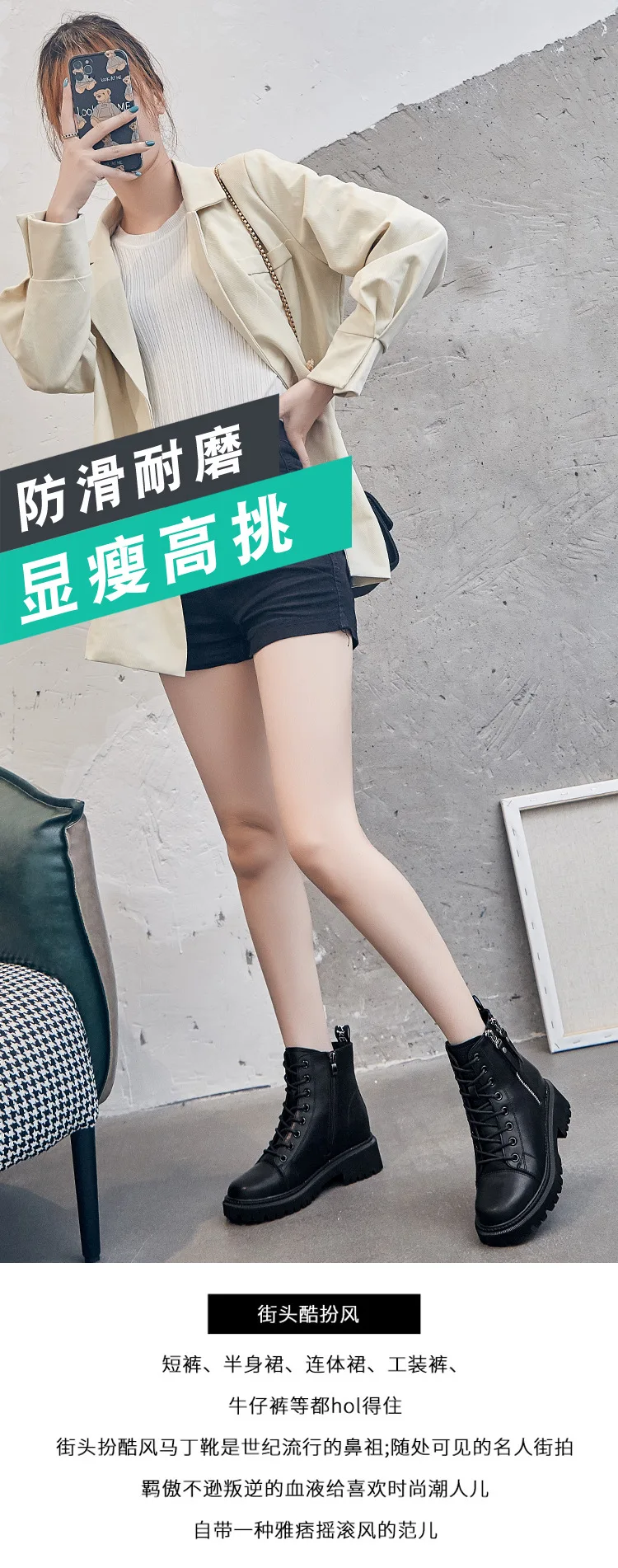 Ботинки из натуральной кожи, женские полуботинки мартинсы на платформе и каблуке, женская дизайнерская обувь, женские ботинки на массивной подошве для женщин, 2021