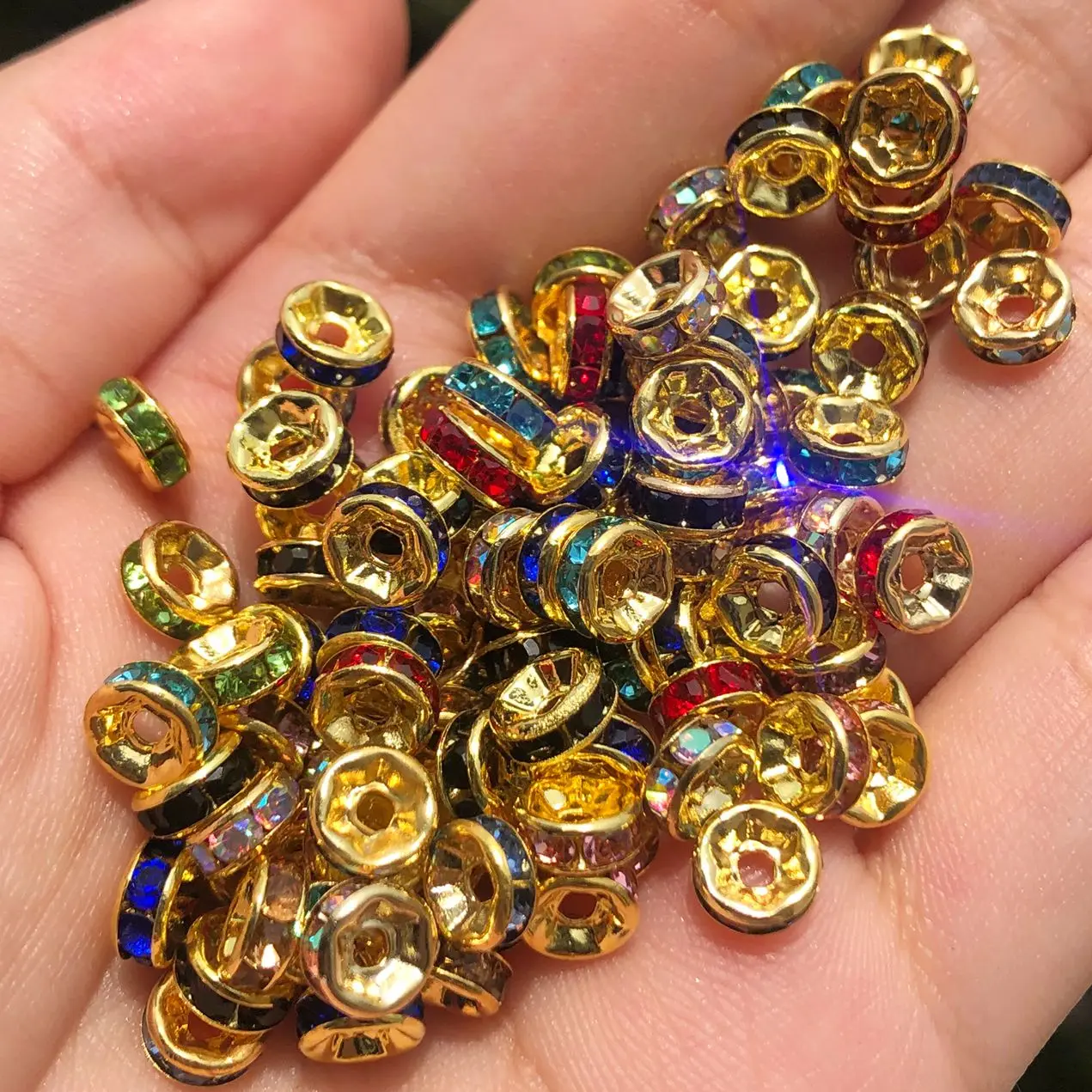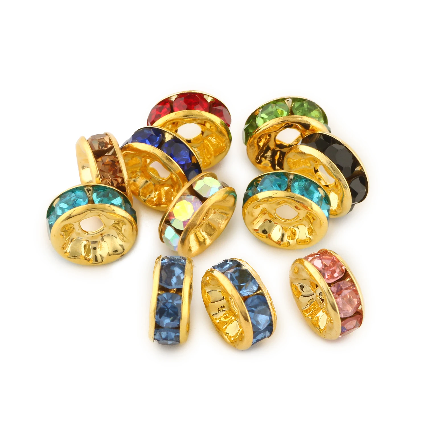 Круглые бусины-разделители с позолоченными стразами, круглые бусины с круглыми вставками для изготовления ювелирных изделий сделай сам, 50 шт.лот, 468 мм