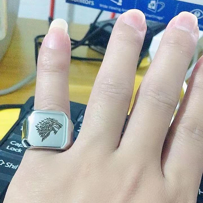 Кольцо мужское из нержавеющей стали с лазерным логотипом и головой волка