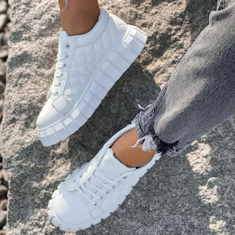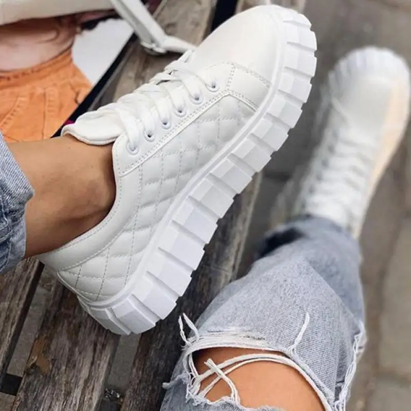 Кроссовки женские из ПУ кожи, Вулканизированная подошва, Классическ...