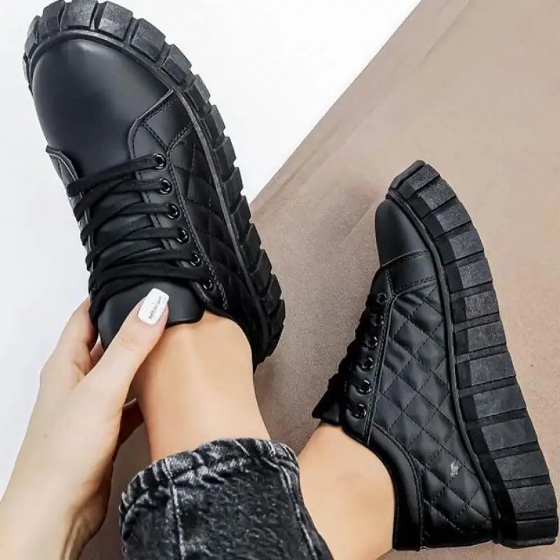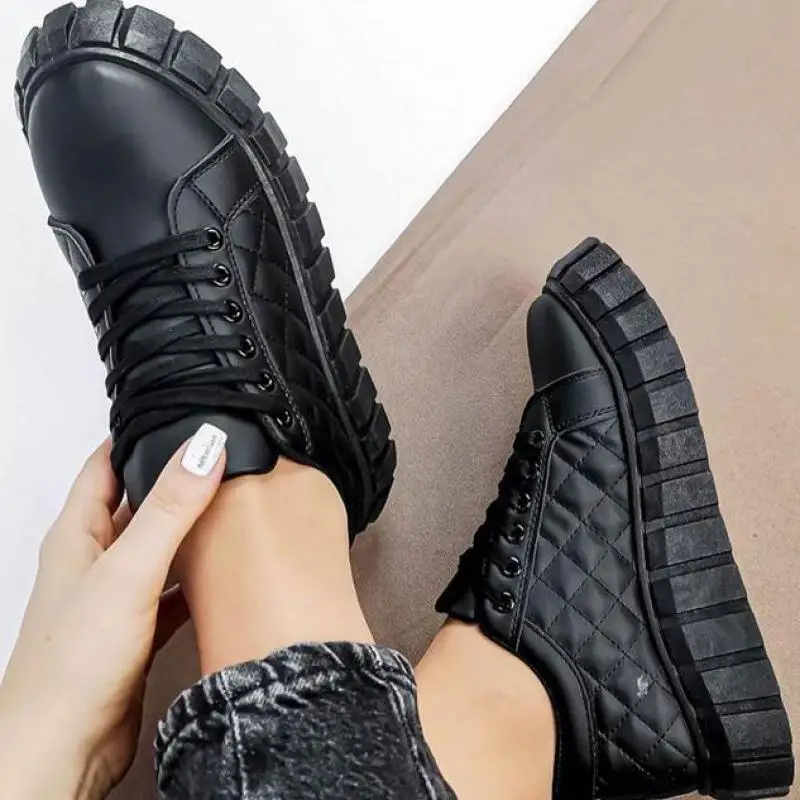 Женские повседневные туфли из ПУ кожи, на толстой вулканизированной...