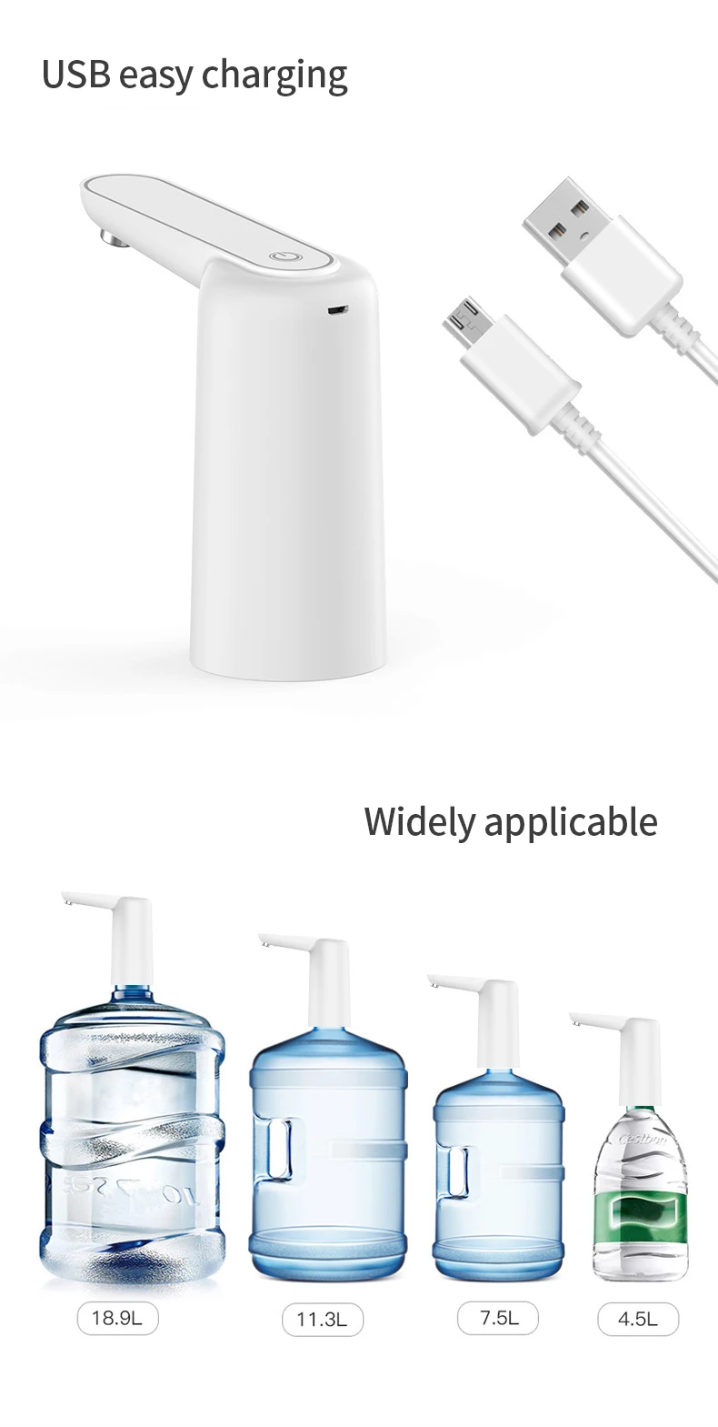 Водяной насос для бутылок с зарядкой через usb автоматический насос для питьевой воды портативный Электрический диспенсер для выключателя безопасный материал: BPA Бесплатный диспенсер для питьевой воды, нержавеющая сталь 304, АБС-пластик высокой плотности, не токсичен, И без запаха. Высокая совместимость: электрическое Насосное устройство подходит для чистой питьевой воды в бутылках, подходит для различных моделей галлонов баррель без подделки крышки. Перезаряжаемая батарея USB: Встроенная перезаряжаемая батарея емкостью 1200 мАч. Может использоваться в течение 30-40 дней или около 4-6 бутылок 5 галлонной воды после полной зарядки. Не нужно заряжать каждый день. Простота в использовании: просто закрепите Маленький насос на бутылке. Один переключатель, абсолютно бесплатно, даже для детей и пожилых людей. Примечание: Этот насос для питьевой воды подходит для галлонов бочки с 2,16 дюймов (5,5 см) на шее. Операционной Напряжение AC/DC 4,2 V Мощность Рейтинг: 5 Вт Время зарядки: 3-4 часа зарядки: микро-зарядка через USB кабель подходит для: 2,3,4,5 галлонов Бутылки для воды Размеры: 14*14*8 см длина шланга: 50 см длина трубы: 50 см инструкции: Подключите силиконовый шланг и вставьте силиконовый шланг в бутылку. Затем пристегните водяной насос, нажмите кнопку, чтобы откачать воду, нажмите кнопку снова, чтобы остановить перекачку заряда с помощью кабеля Micro-USB, когда батарея не работает, цвет: черный + белый материал: ABS + посылка из нержавеющей стали: 1 * Водяной насос 1 * впускная труба 1 * выпускная труба 1 * зарядный кабель Micro-USB только вышеуказанная посылка, другие продукты не включены. Примечание: светильник и различные дисплеи могут привести к тому, что цвет товара на картинке немного отличается от реального. Допускается погрешность в измерениях +/- 1-3 см.