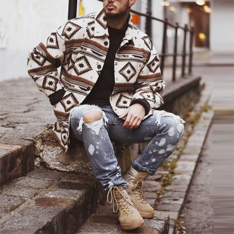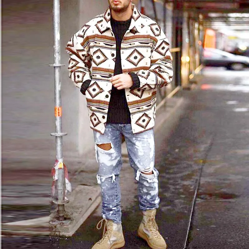Новинка 2021, мужской осенний модный шерстяной Блейзер с принтом, куртки средней длины с застежкой-лацканами, кардиган контрастных цветов, Женская куртка