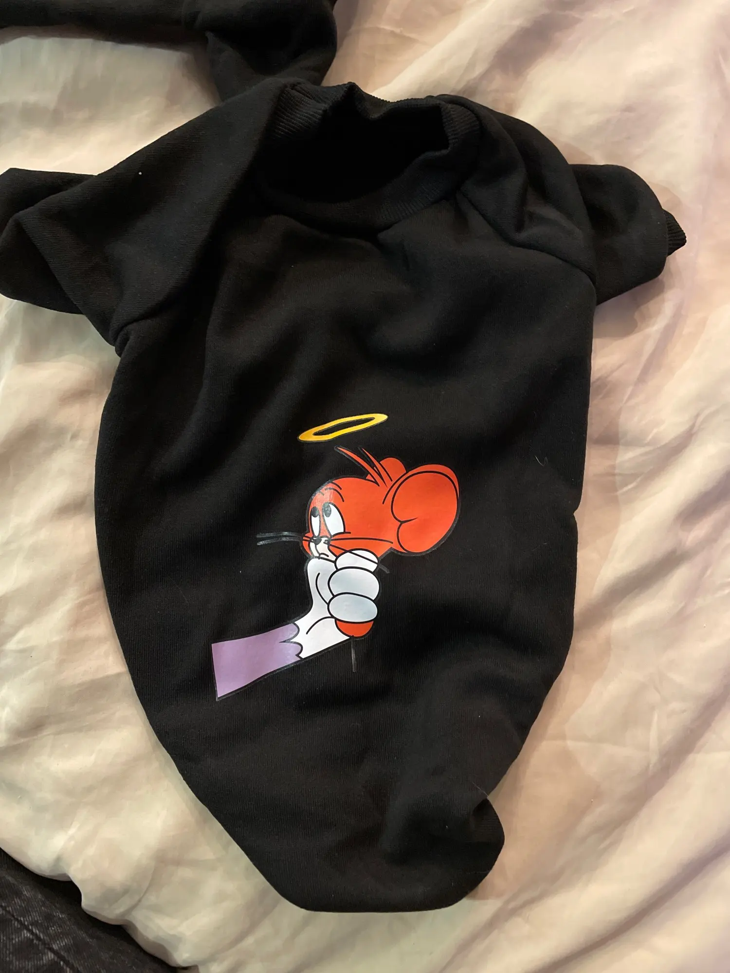 Размер XXL. Плюсы - аккуратно сшито, внутри тонкий флис, картинка хорошо сделана (без отклеек), длина рукавов коротенькая(как раз на таксу или корги, или подобную маленькую собаку), думала, что воротник будет очень большой, но нет, воротник для собачки с тоновой шеей, хорошо тянется, поэтому если есть проблемы по размерам, то на 1/2 см дорастянется. Минусы - ужасный запах от кофточек, на одной из футболок(мы заказывали 2) на одном из швов не очень аккуратно торчат нитки, но это совсем не критично, доставка не быстрая