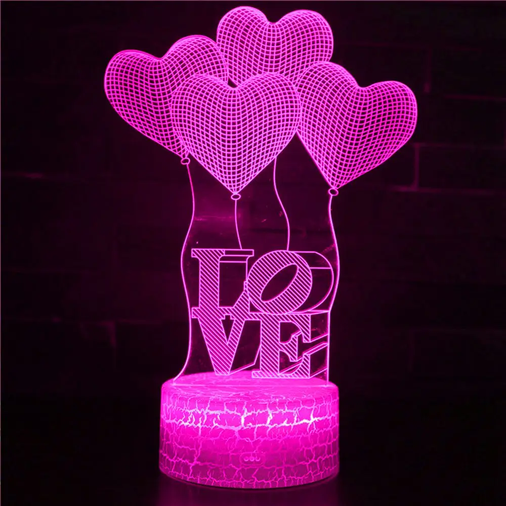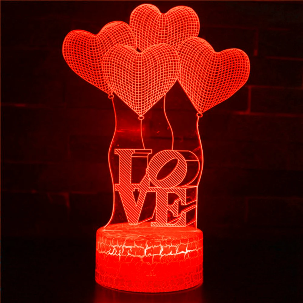 Подарок на День святого Валентина для любимой девушки красочная USB голограмма LOVE Heart лампочка Звезда 3D Ночник светильник льник для вечерние