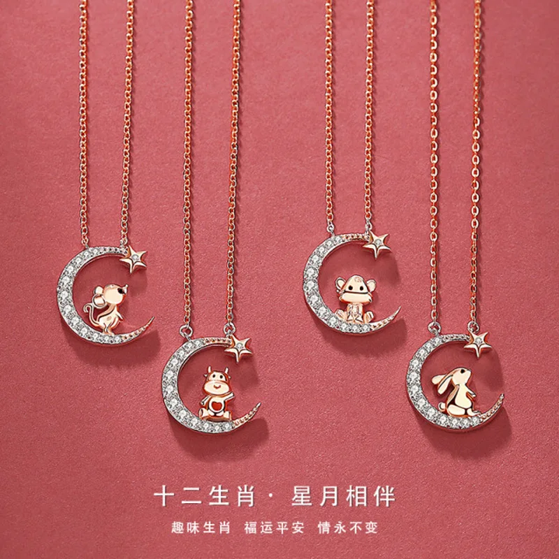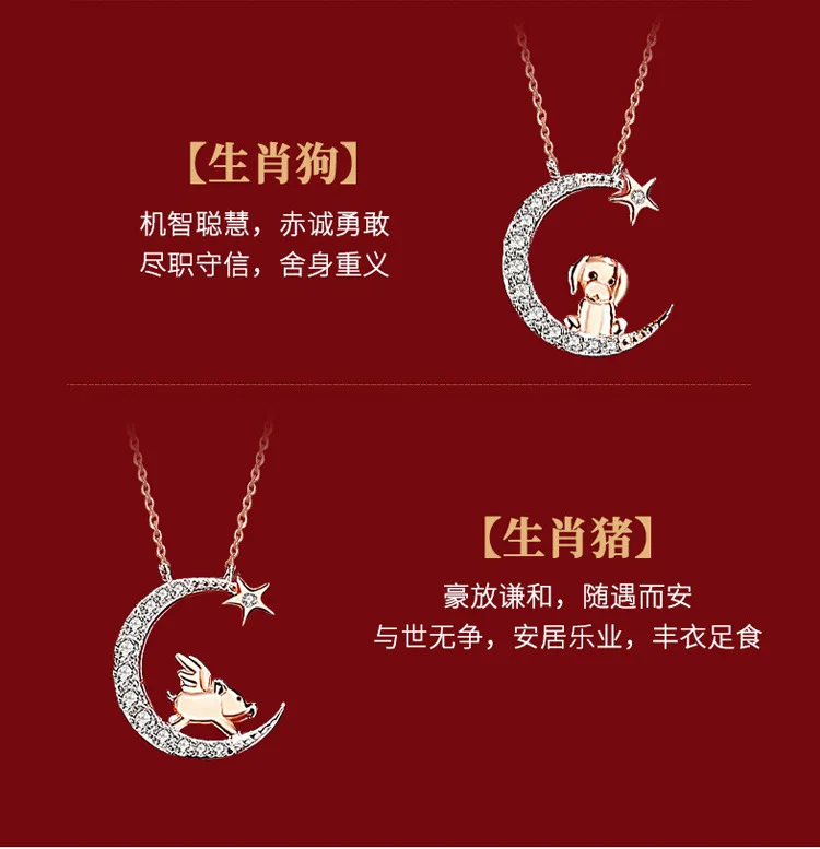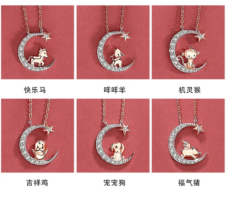 Модное ожерелье с подвеской в виде коровы, обезьяны, свиньи, собаки, лошади, курицы, дракона, свиньи, звезды и Луны