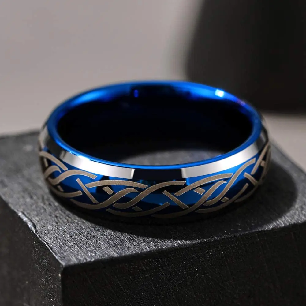 Кольцо мужское из вольфрамовой стали в синюю полоску, 8 мм