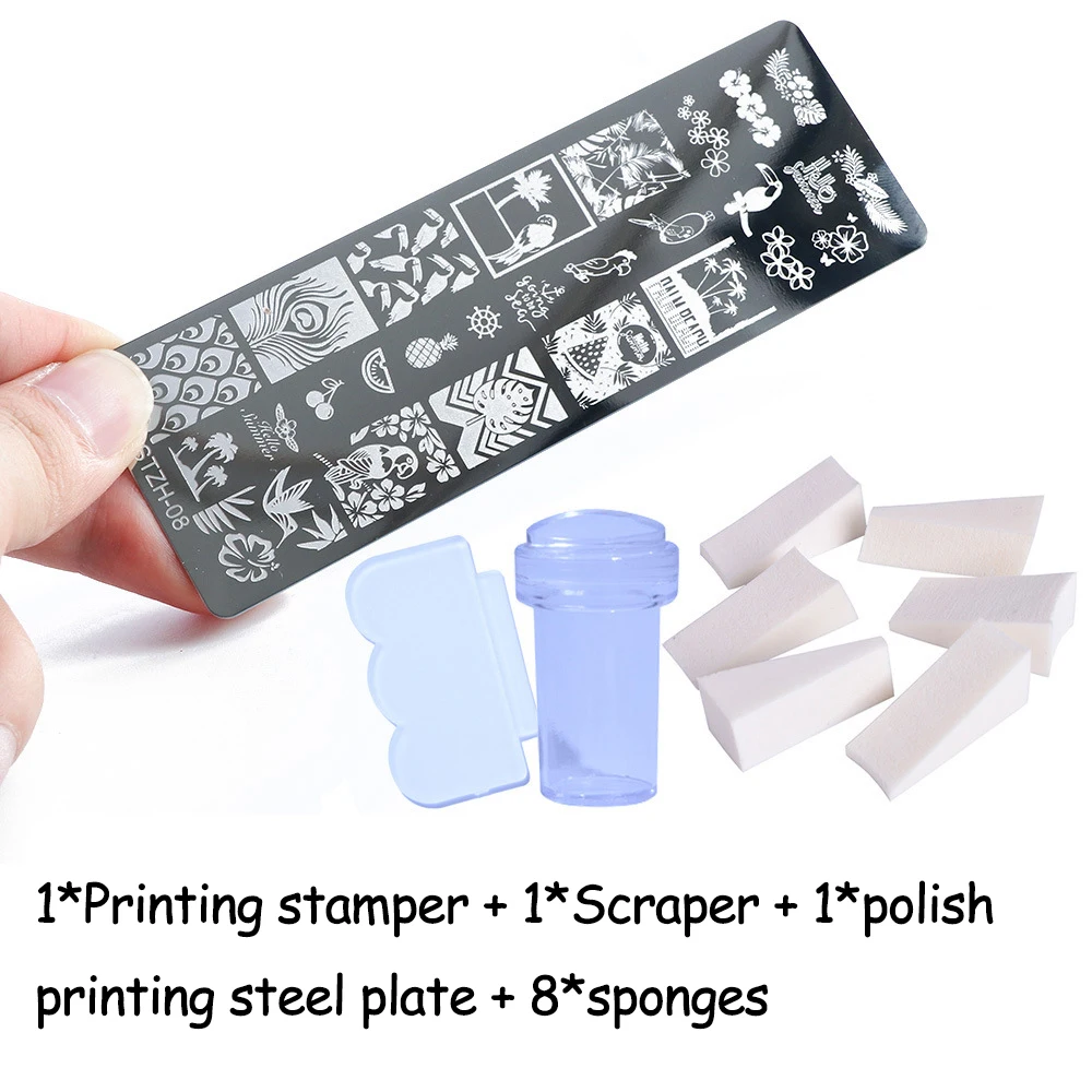 Дизайн ногтей шаблон печати комплект Сталь штамп скребок губка комп...
