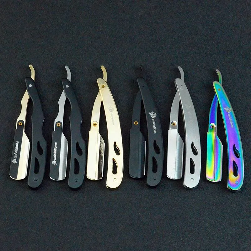 Многофункциональная ручная бритва Univinlions с прямыми краями из нержавеющей стали, острый парикмахерский станок, складной бритвенный станок для бороды с лезвием