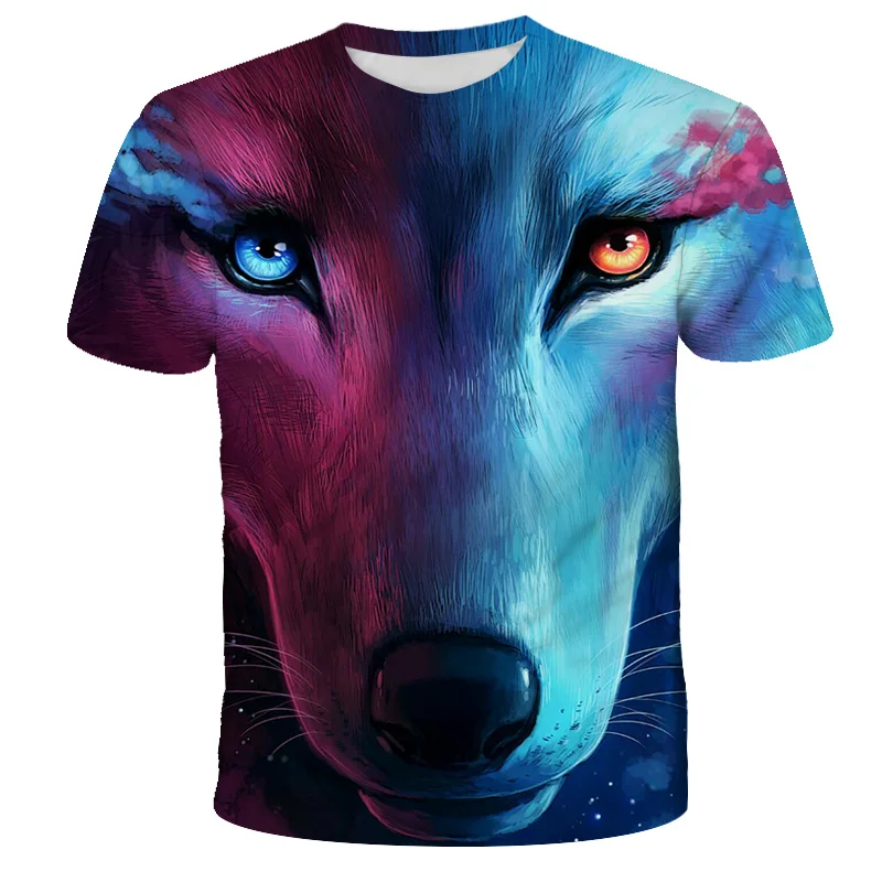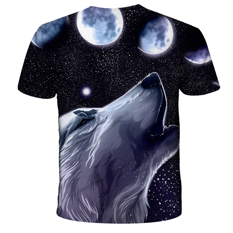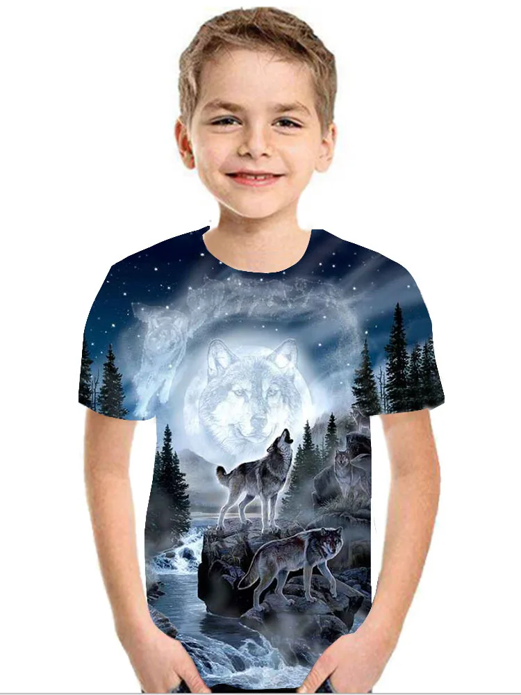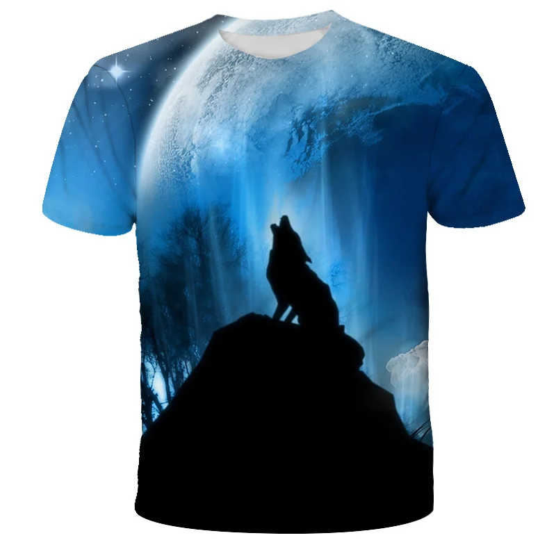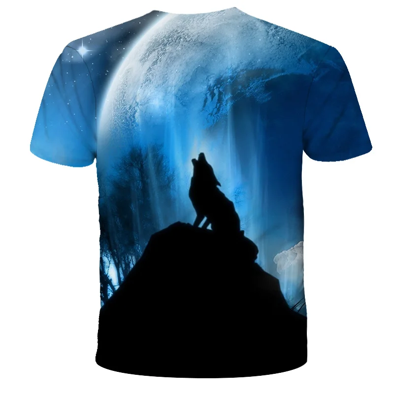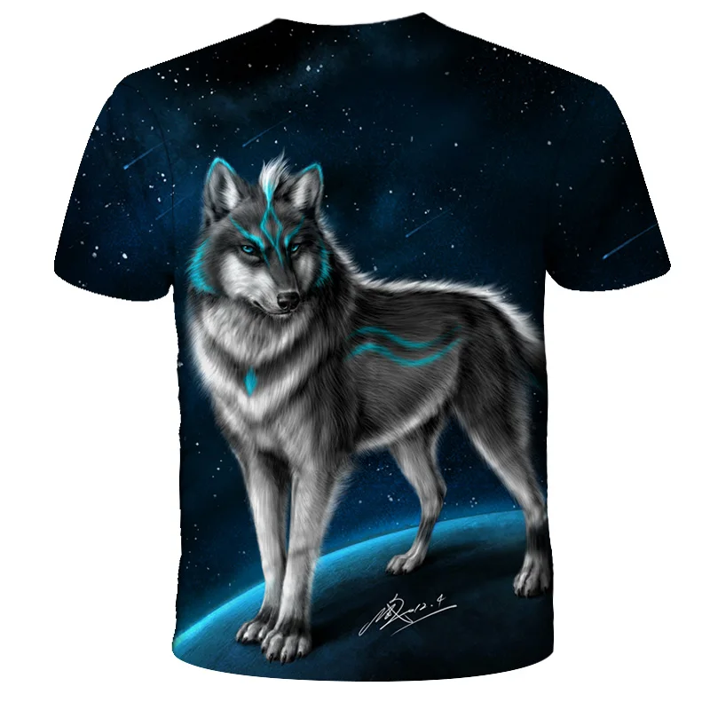 Футболка оверсайз для мальчиков и девочек, модная уличная одежда с 3D-принтом звездного неба, волка, с круглым вырезом и коротким рукавом, в стиле хип-хоп, летняя