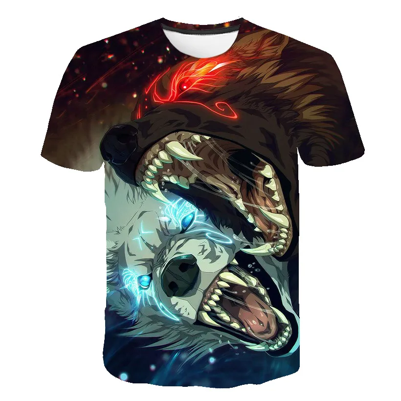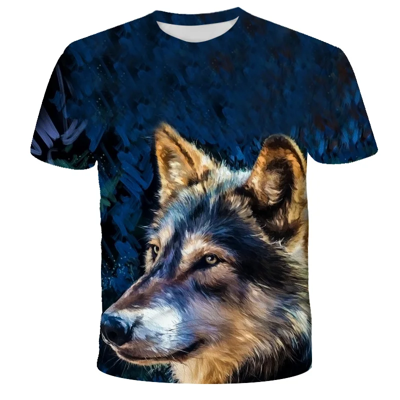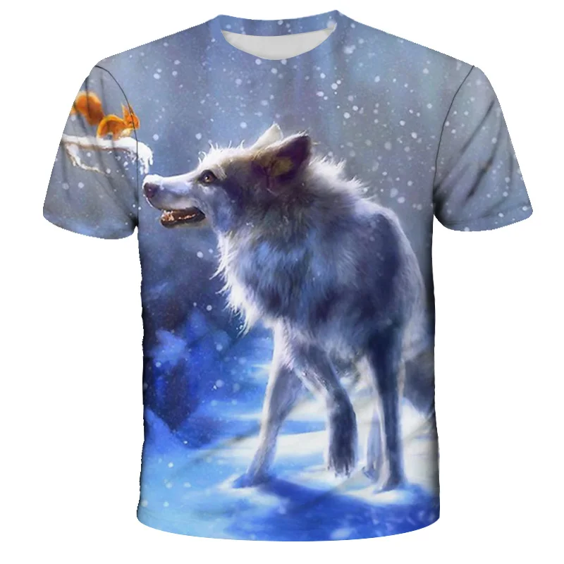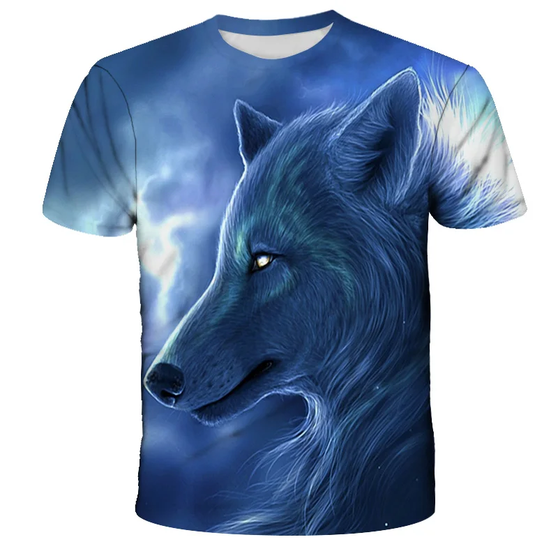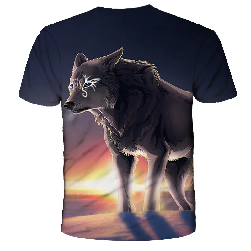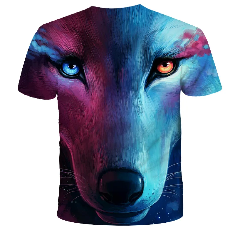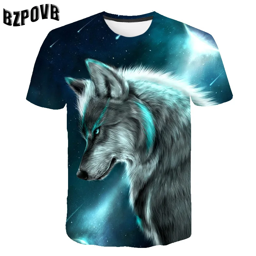 Футболка оверсайз для мальчиков и девочек, модная уличная одежда с 3D-принтом звездного неба, волка, с круглым вырезом и коротким рукавом, в стиле хип-хоп, летняя