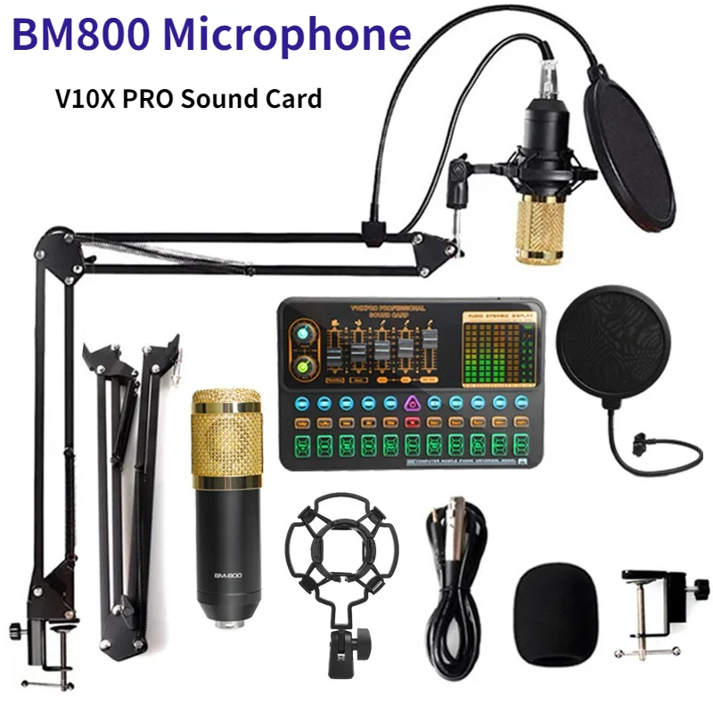 Профессиональный конденсаторный микрофон BM 800, беспроводная звуковая карта Bluetooth V10 PRO для ПК, компьютера, телефона, караоке, живых игр, пения