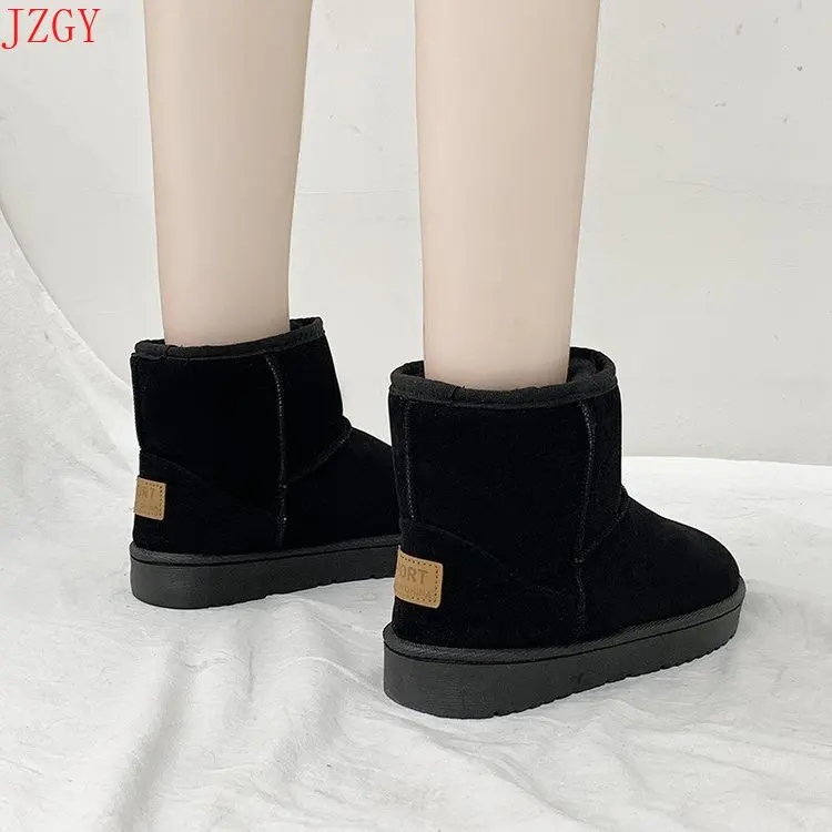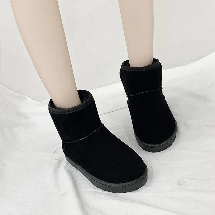 Новинка 2021, стильные базовые короткие зимние сапоги из овчины для снежной погоды, женские водонепроницаемые теплые ботильоны на плоской подошве с меховой подкладкой из натуральной шерсти, размеры 36-40