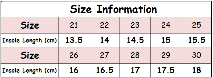 Поскольку все размеры детской обуви отличаются, при заказе детской обуви вы должны соответствовать нашим размерам и внутренней длине.