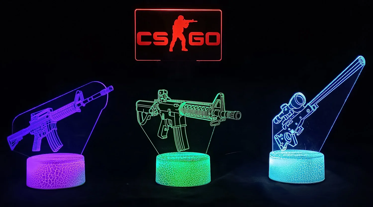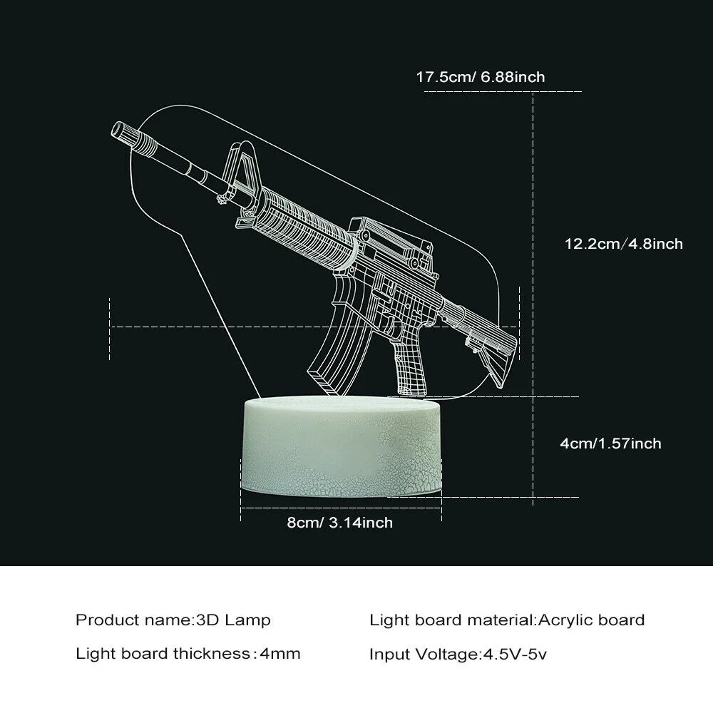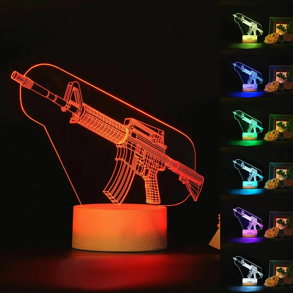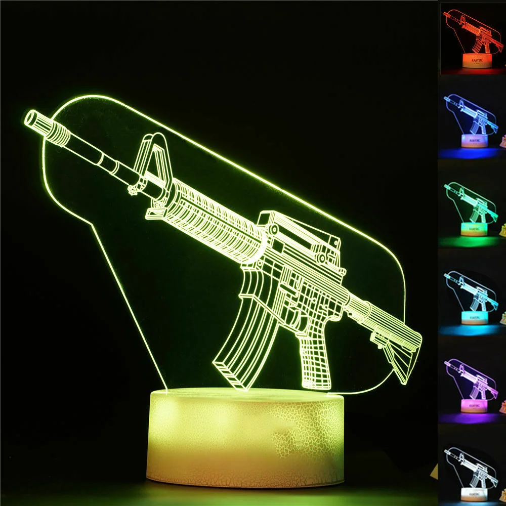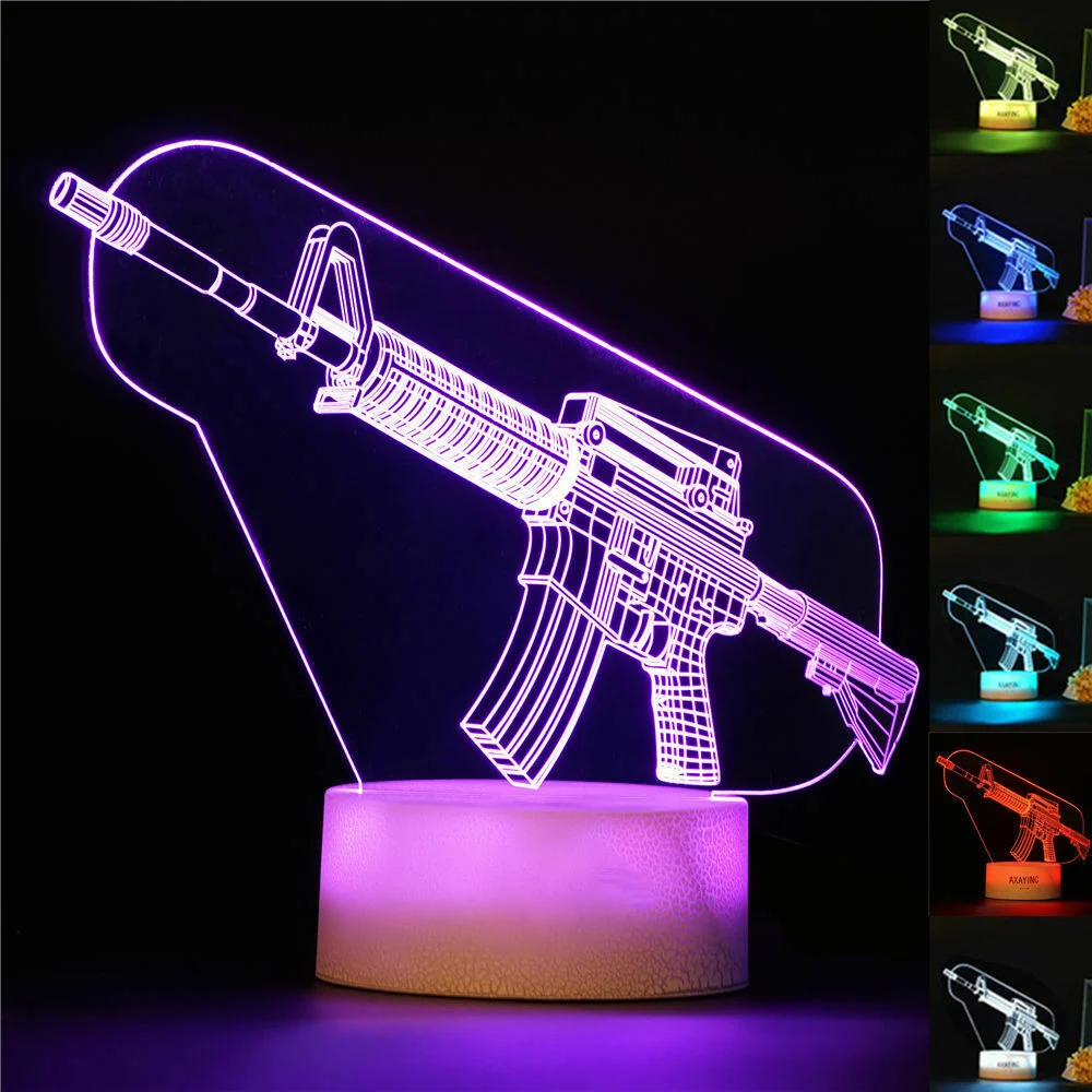 16 цветов меняющий светильник s M4A1 машинный пистолет сенсорный переключатель атмосфера 3D ночной Светильник настольный оптический иллюзионный светильник новинка подарок