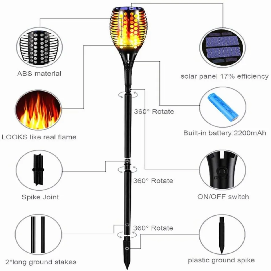 Уличный светодиодный фонарик на солнечной батарее с мерцающим пламе...