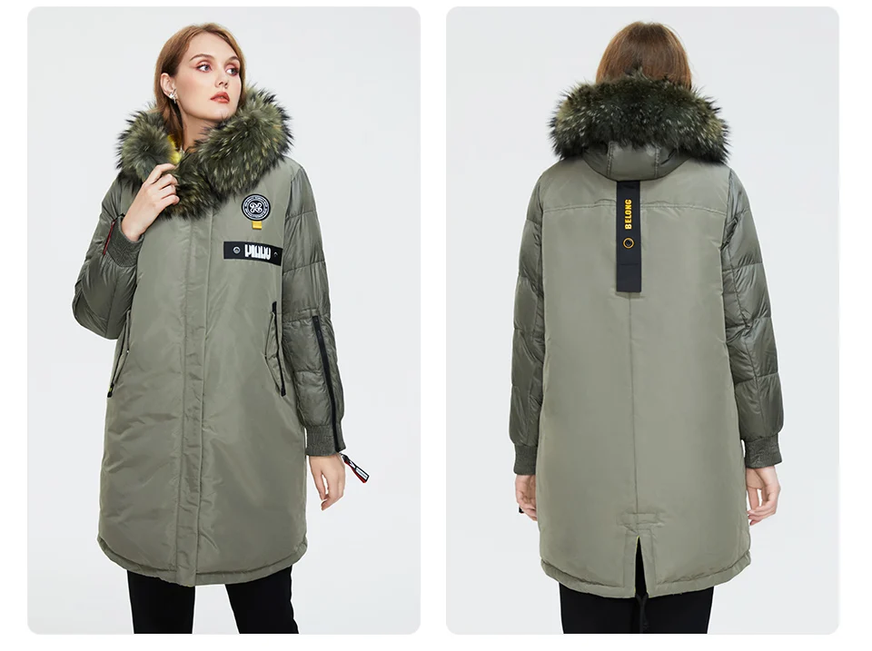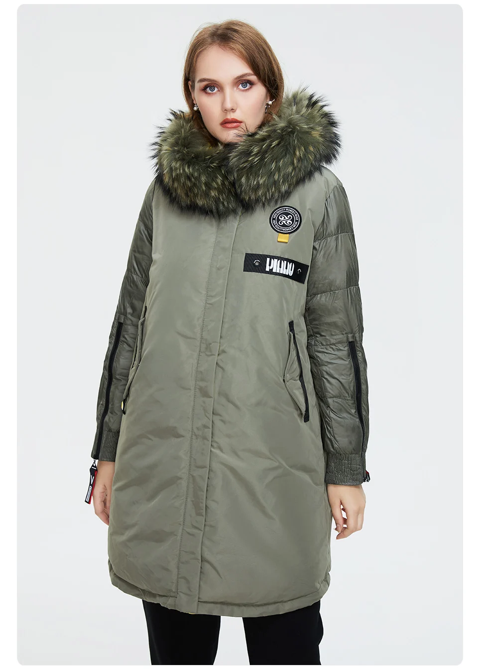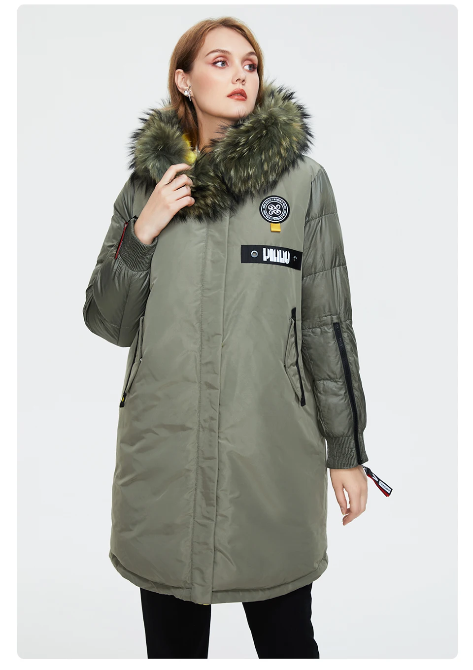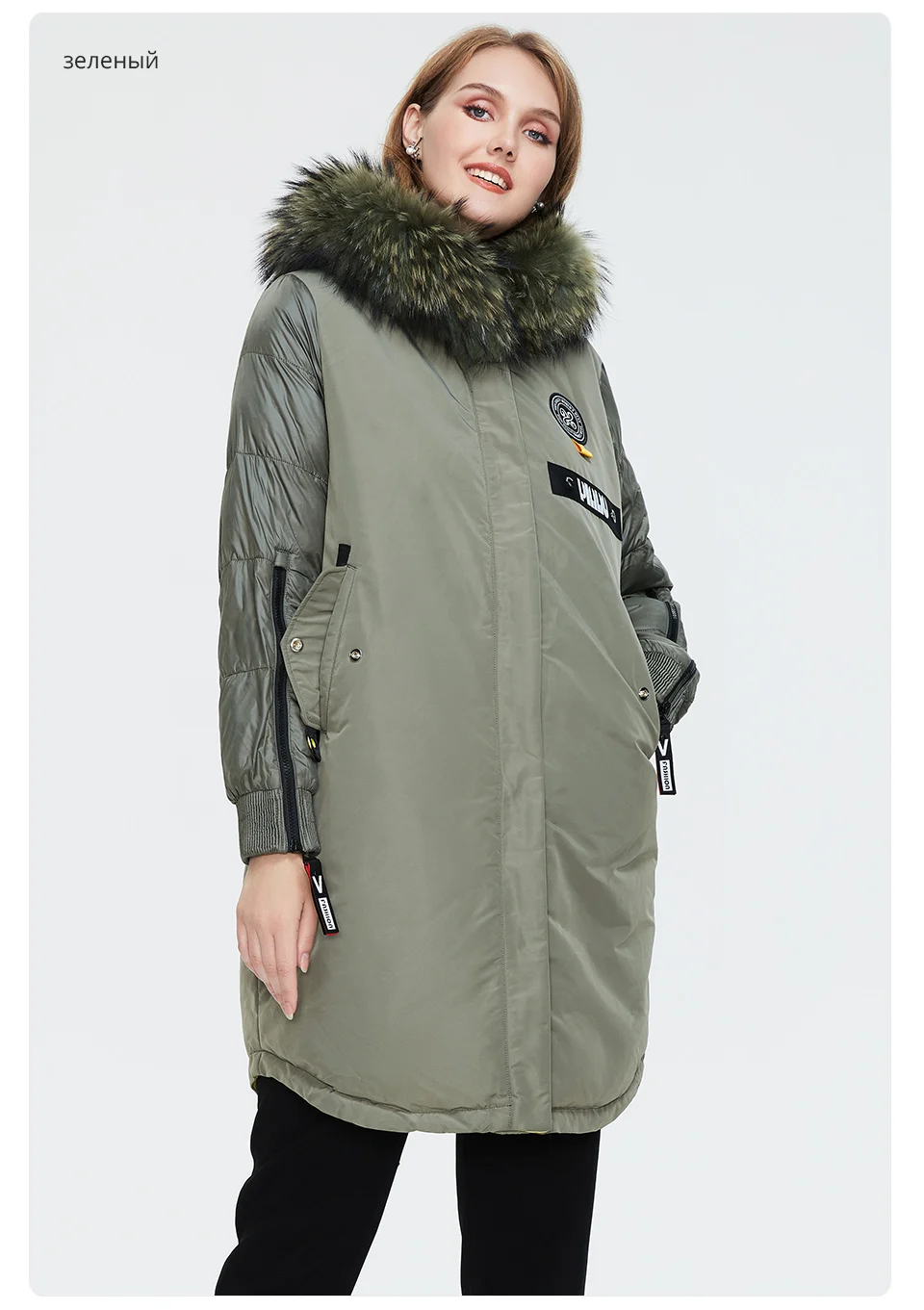 Куртка женская зимняя ZIAI, с меховым воротником, 2021, длинная, те...