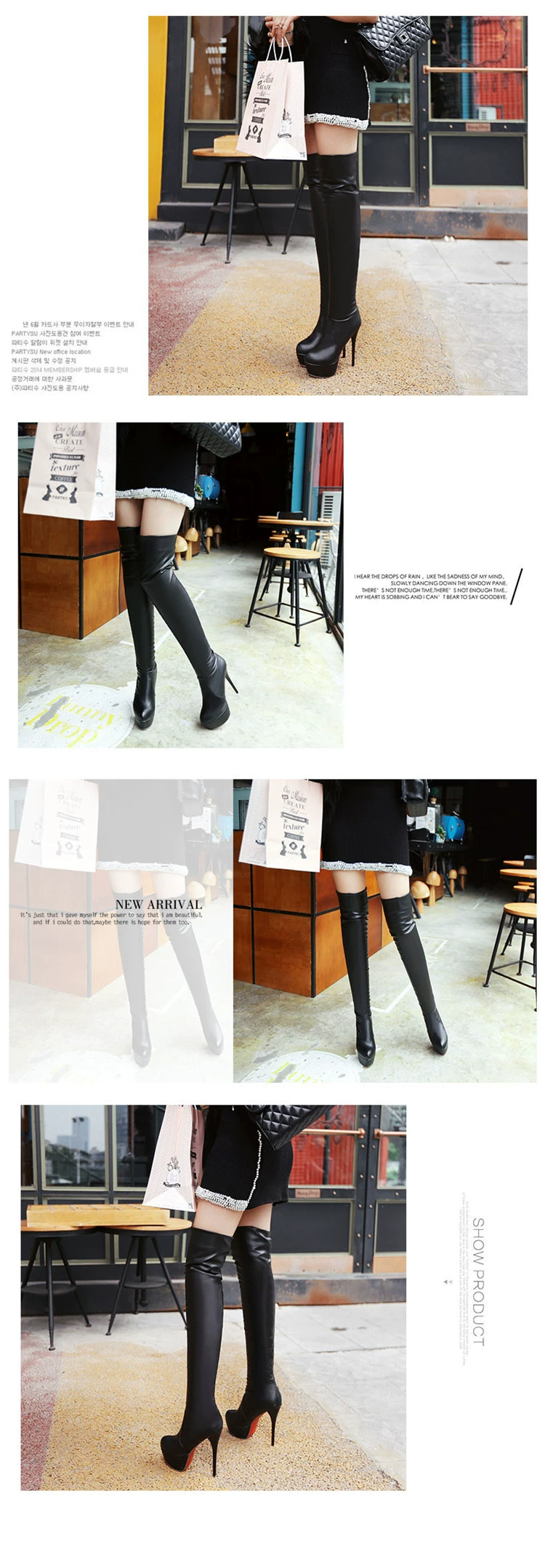 Сапоги женские зимние, на платформе, с мехом, на очень высоком тонком каблуке, размера плюс, 31-46