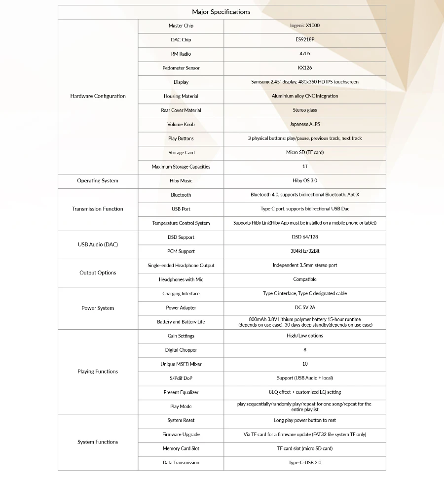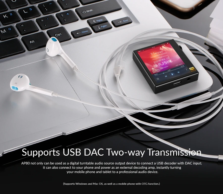 Hi-Res аудио производительность и для захвата глубины и широты каждой заметки, AP80 имеет флагманский чип ES9218P DAC, обеспечивает SNR до 126dB и THD + N до-113dB для вас, чтобы испытать тонкости каждого инструмента.