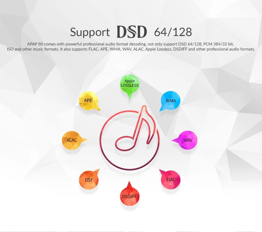 Feature 2Support APTX, DSD64/128, PCM384Khz/32bit