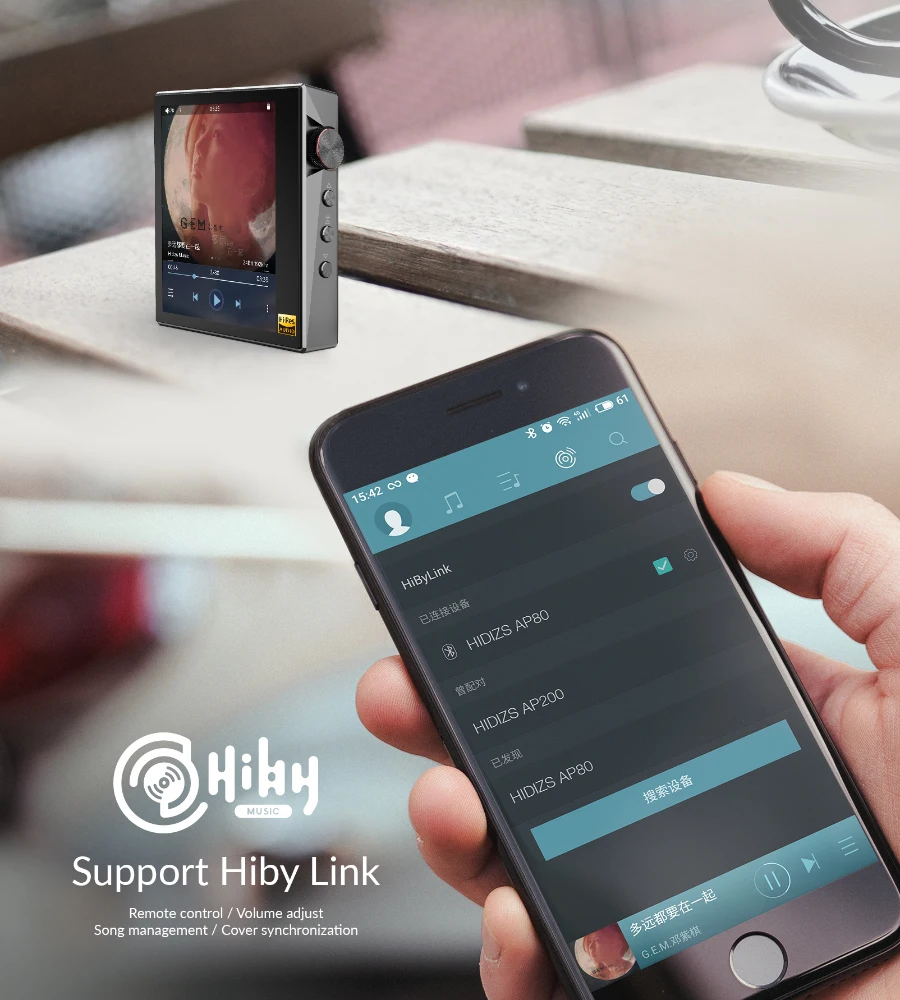 Подключение по Bluetooth без потерь в двух направлениях с Небьющимся Bluetooth 4.0 подключение и apt-X, Hidizs' AP80 по-прежнему может обеспечить «CD-like» качество звука по Bluetooth.HiBy LinkControl AP80's music wireless непосредственно с вашего телефона по ссылке HiBy, чтобы обеспечить высокую точность, которая не достигается по Bluetooth.