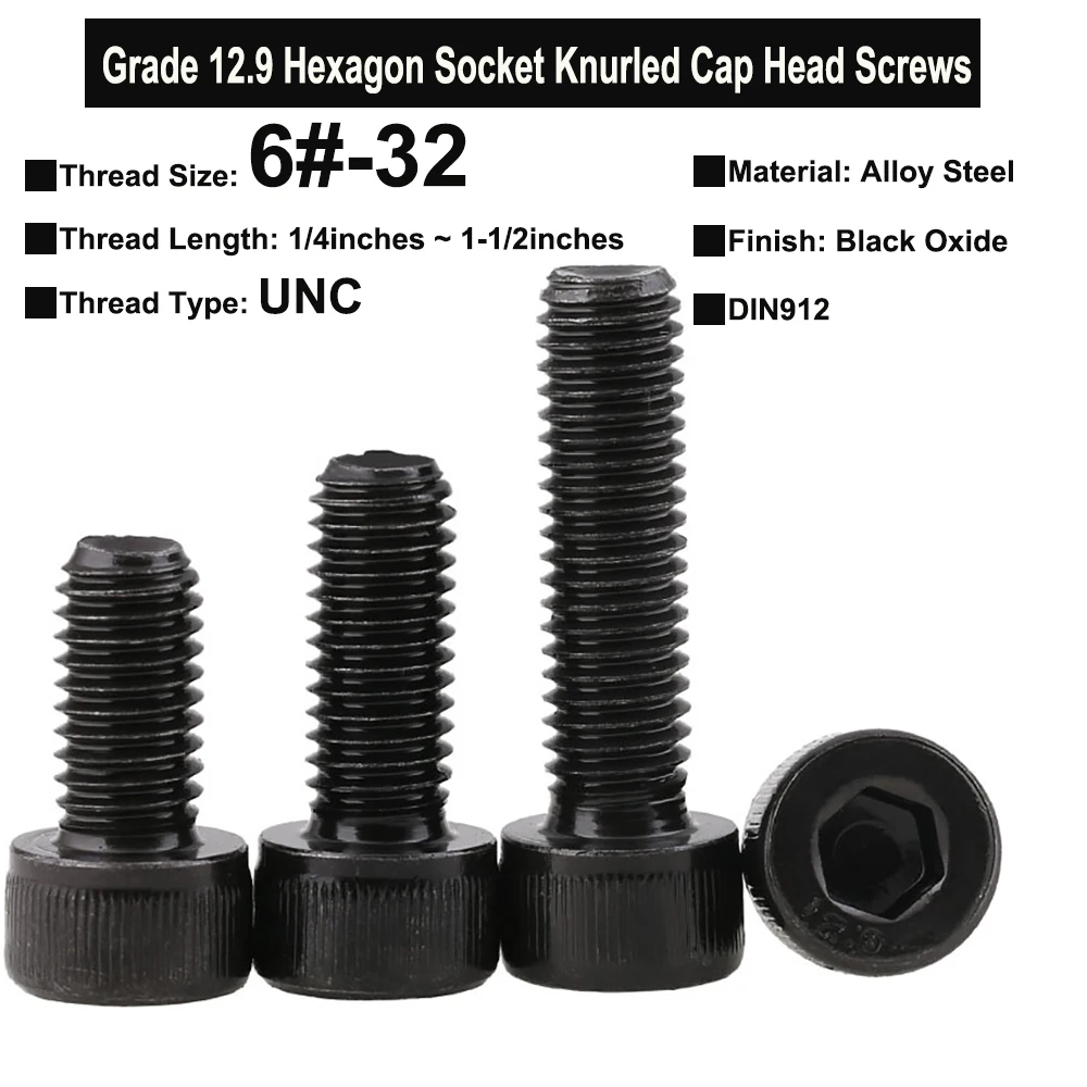 20 шт. 6 #-32 ранг 12,9 винты UNC резьба из легированной стали Шестигранная головка с накаткой болты DIN912 длина резьбы 1/4 ~ 1-1/2 дюйма