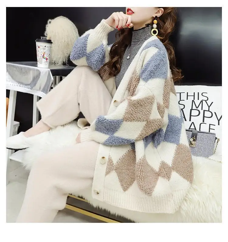 Женский плотный вязаный кардиган с бархатной подкладкой, свободный ...