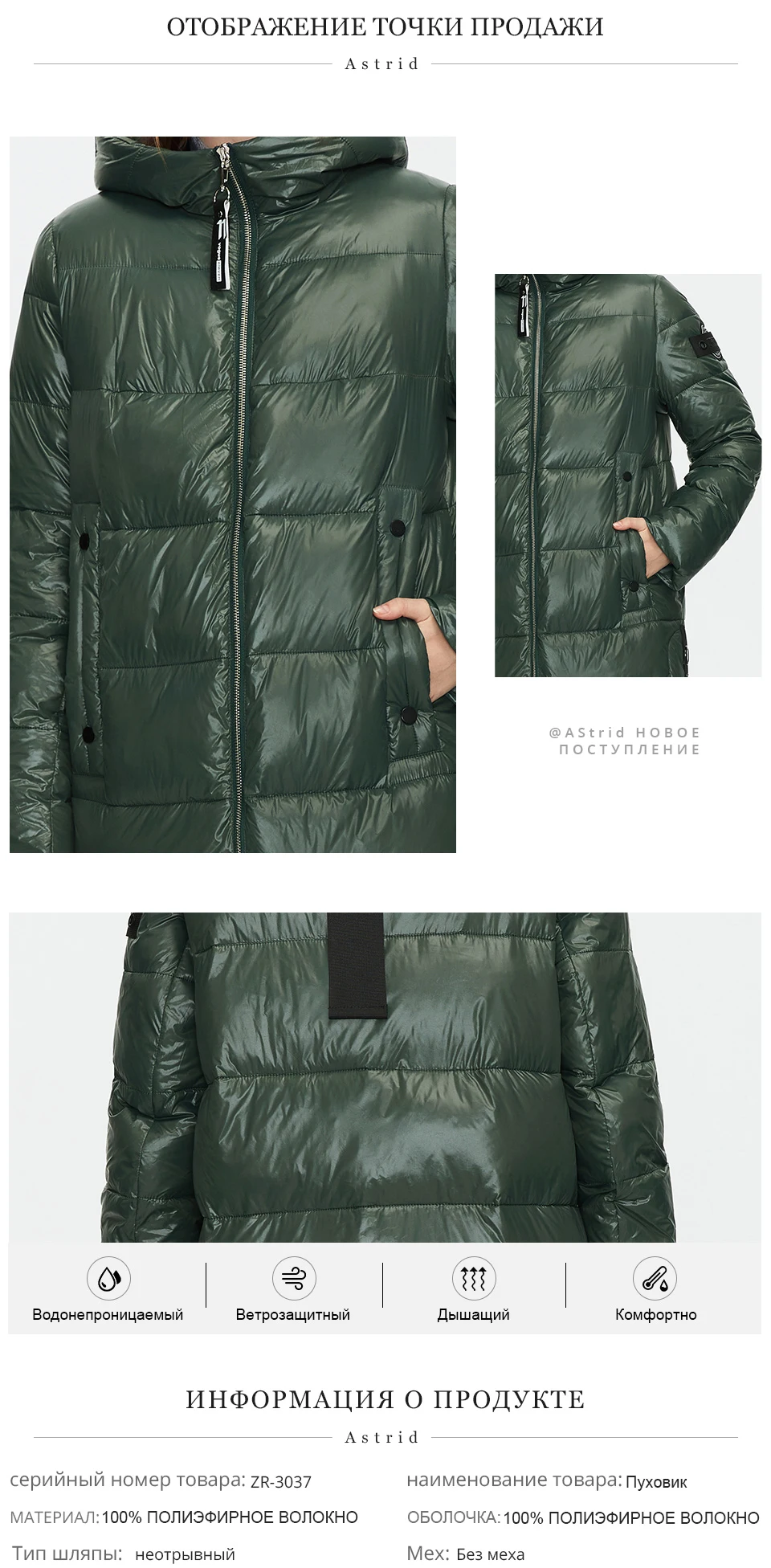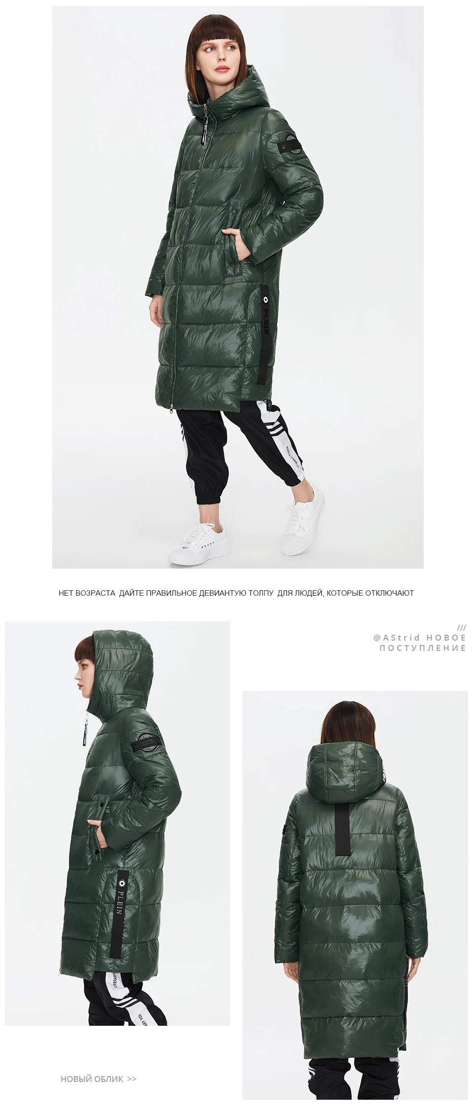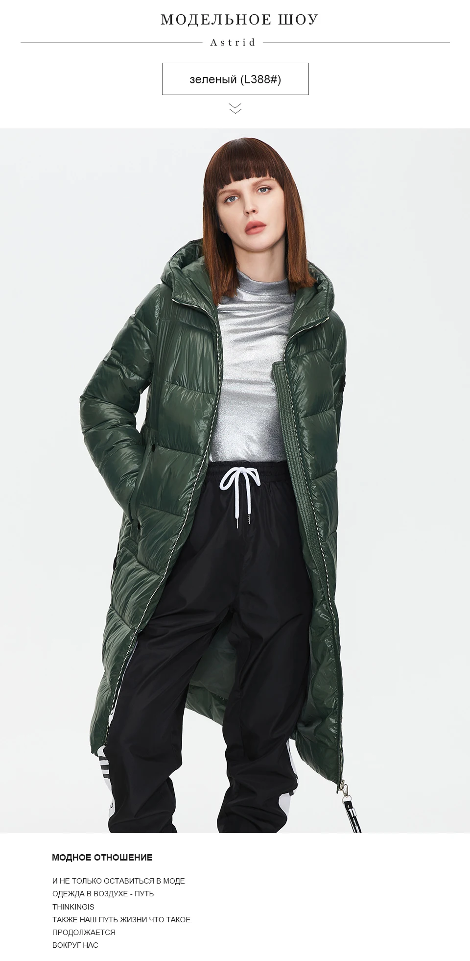 Astrid 2021 Зима Новое поступление пуховик женский с капюшоном модный стиль цвет черный длинный зимний для женщин AR-3037