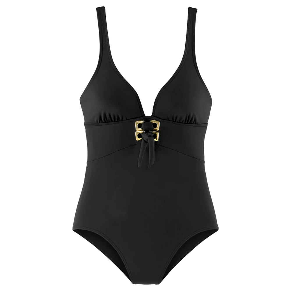 Женский сплошной купальник с эффектом пуш-ап, черный однотонный купальный костюм с высокой талией, пляжная одежда, 2022