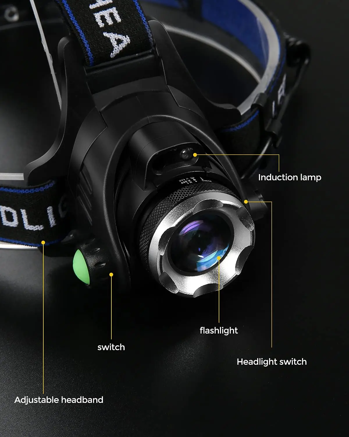Суперъяркий светодиодный налобный фонарь T6 с датчиком движения, Головной фонарь с фокусировкой для кемпинга и рыбалки, 600 люмен