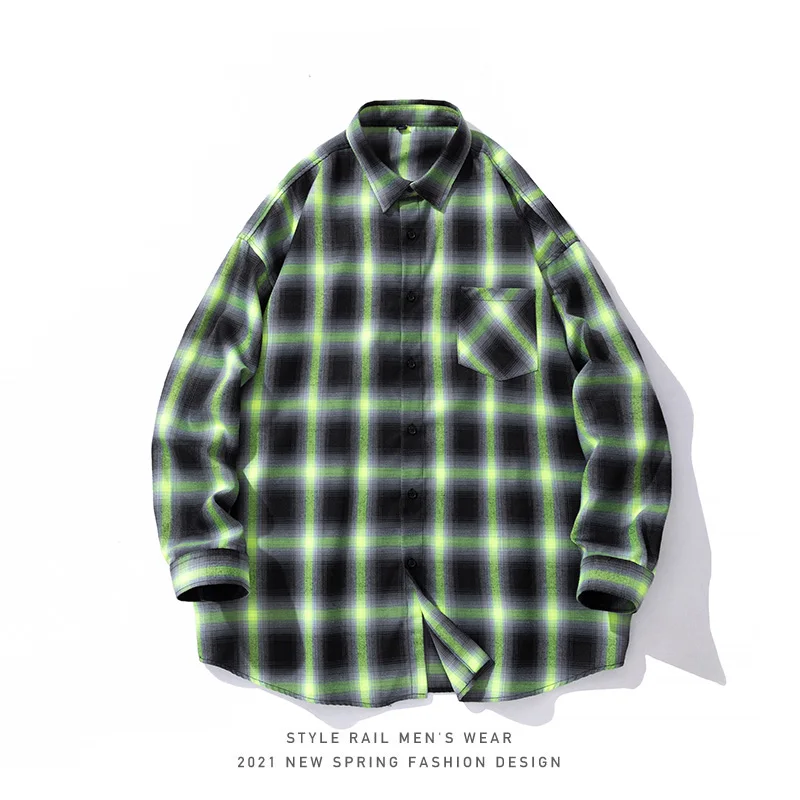Мужская Фланелевая рубашка с длинным рукавом, зеленая клетчатая рубашка в Корейском стиле, одежда в стиле Харадзюку, весна-осень 2022