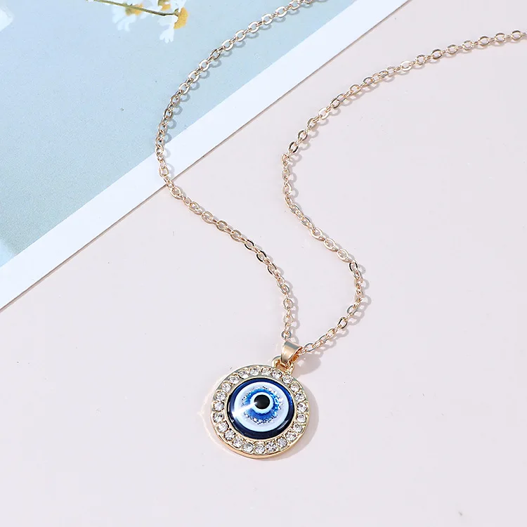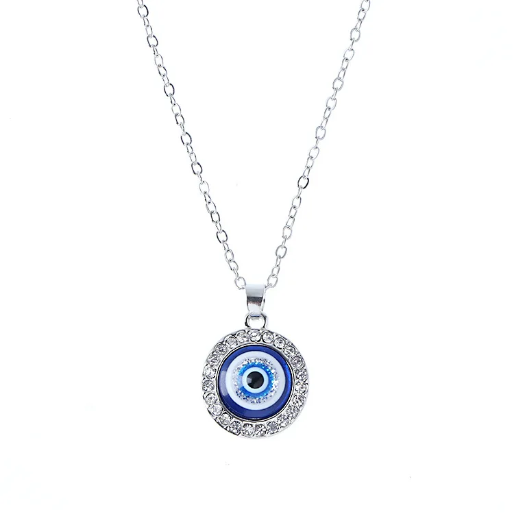 QWC новое ожерелье с дьявольским глазом Стразы круглые модели голубые глаза Подвеска из нержавеющей стали ожерелье ювелирные изделия Хип-хоп мода