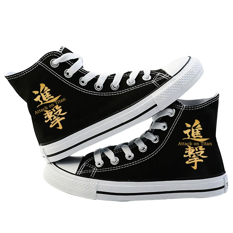 Холщовые кроссовки с высоким верхом для мальчиков и девочек, повседневная обувь для косплея аниме атака на Титанов, с принтом, на плоской подошве