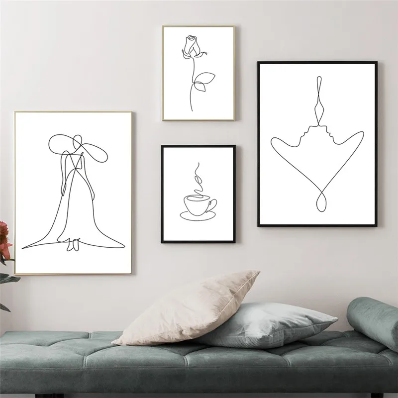 Абстрактная одна линия художественная фигурка холст живопись абстра...