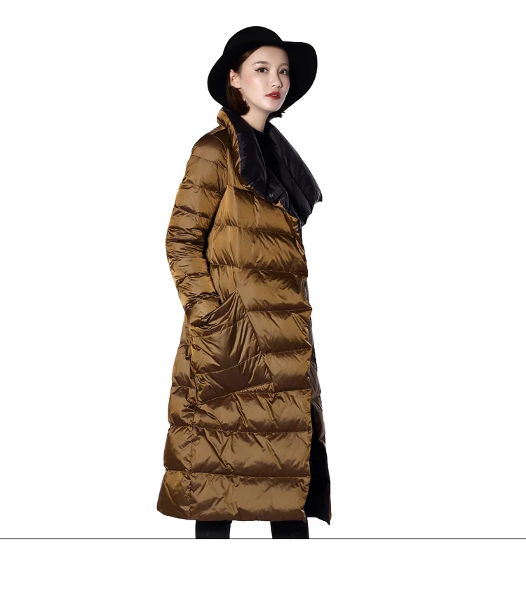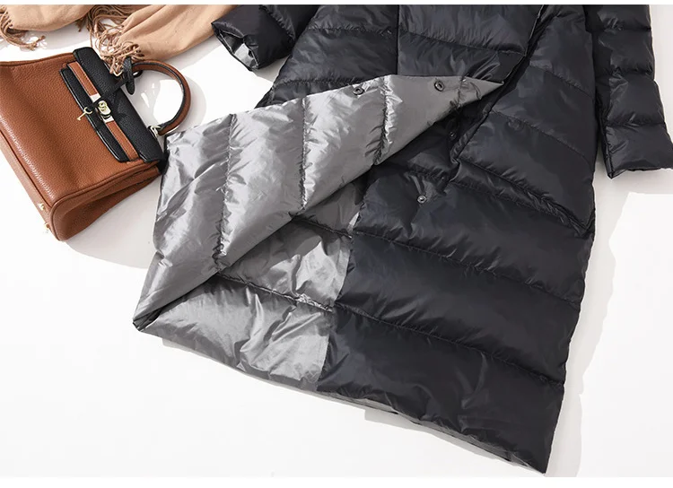 Пуховик женский двухсторонний, длинный, на 2021 пуха белой утки, 90%, клетчатая одежда