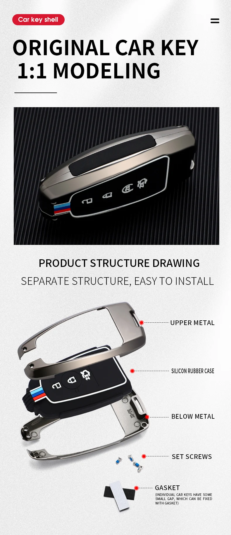 Чехол для автомобильного ключа из цинкового сплава, полная защита 3...