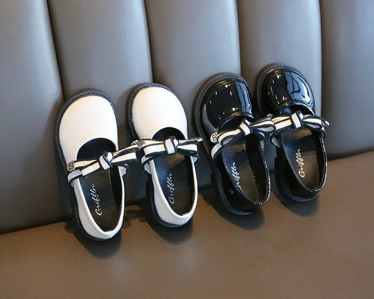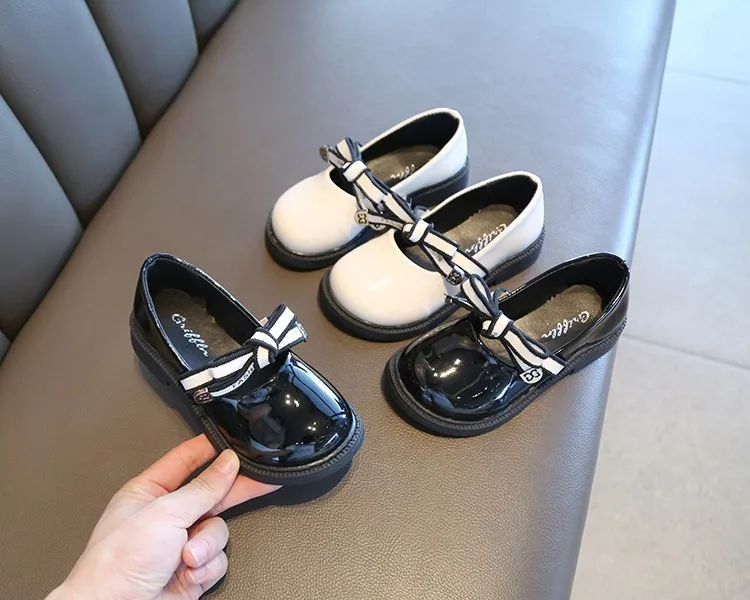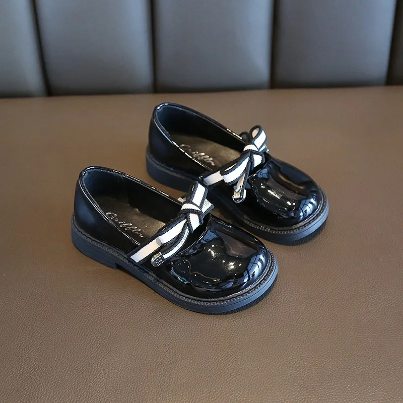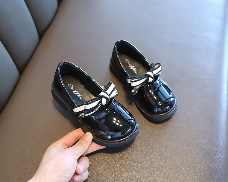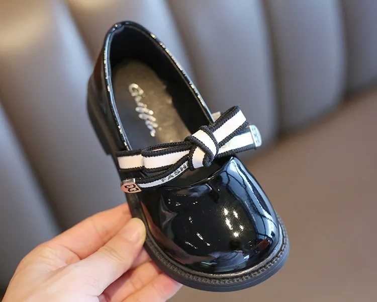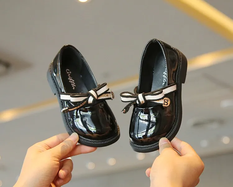 Детская модная обувь принцессы из лакированной кожи осенние черные лоферы с бантом для девочек Размер 23-36 красивая детская обувь с круглым носком