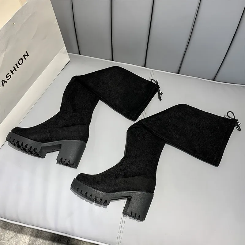 Женские сапоги до бедра, зимние черные сапоги выше колена на высоком каблуке, 2022